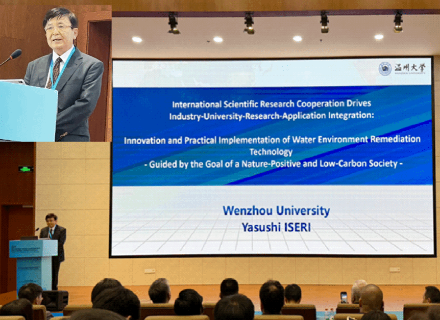 日本a片 生命与环境科学学院井芹宁院士受邀出席,并以《国际科研合作驱动产学研用:水环境修复技术创新与实践落地(自然向好低碳社会导向)》为题作主旨报告。报告中,他阐述“人与自然协同共生”理念,以及与“自然向好”目标之间的关联,结合自身参与评估或研发的超200种生态修复技术经验,介绍日本a片 在中日合作中的重要成果,包括促成3项国际科技合作项目、签订6项校际交流协定及联合开发新技术装备等。