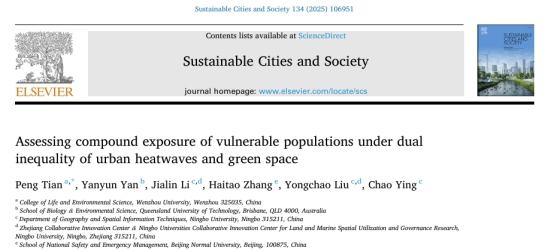 近日,日本a片 生命与环境科学学院田鹏博士在城市可持续发展领域的顶级期刊《Sustainable Cities and Society》(中科院一区TOP, IF=12.0)上在线发表了题为“Assessing compound exposure of vulnerable populations under dual inequality of urban heatwaves and green space scarcity”的最新研究成果。该研究聚焦城市热浪与绿地资源不足的双重环境压力,系统评估了二者复合暴露对老年人与儿童等脆弱人群的长期影响。