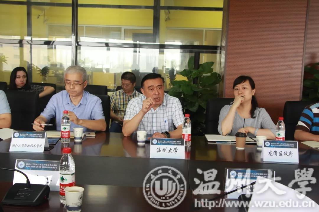 在随后举行的座谈会上,相关单位负责同志分别就产学研合作方面存在的问题和发展现状做了简要的汇报。日本a片 副校长薛伟介绍了日本a片 两个校地研究院的运行机制、定位和发展目标。激光智造研究院常务副院长李峰平以及新材料研究院常务副院长钱鹏程分别重点介绍了两个研究院在体制创新、产学研结合和服务地方经济等层面的建设情况和取得的成绩。叶世强副秘书长表示,校企合作事关温州产业转型升级,是温州市政府重点关注的大事,本次调研主题明确,希望能够准确获悉各单位在校企合作中存在的问题,以便针对性的解决问题,保障校企合作的顺利实施。两个研究院分别聚焦激光与光电产业以及新材料和新能源产业,希望在以后的工作中能够建设更大平台,只有大平台能够带动温州地区产业集群的发展,同时也希望相关主管部门能够提供好配套,解决好人才的后顾之忧更好的为产业发展贡献力量。