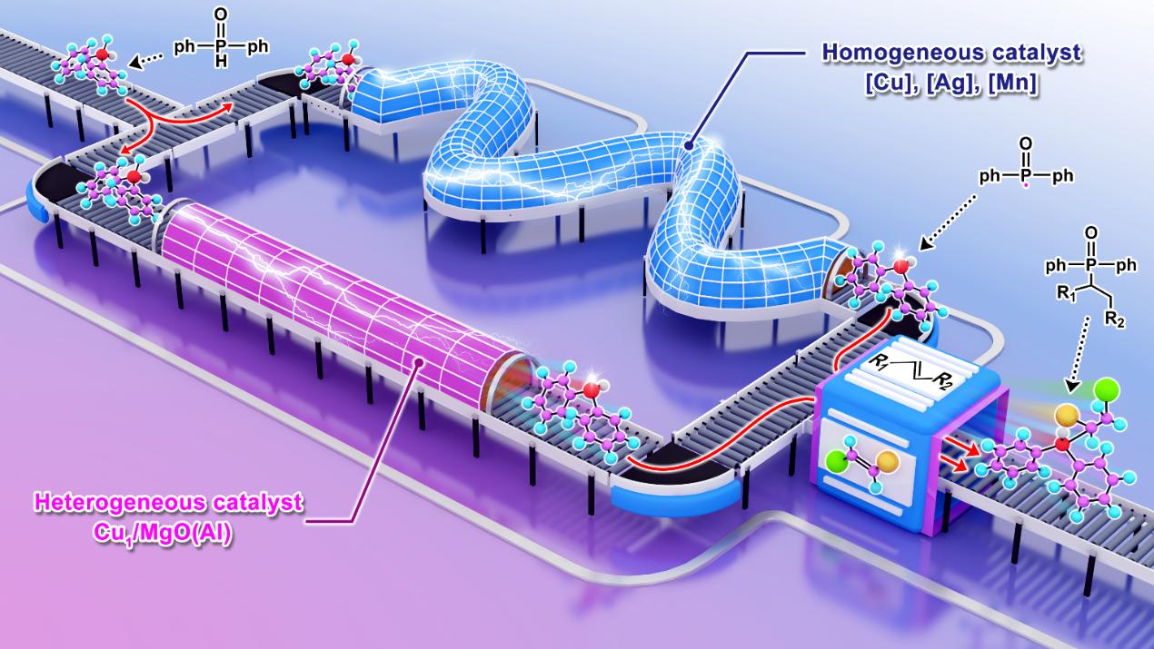 实现均相反应多相化一直是有机合成与精细化工领域的热点课题,但相比于均相催化剂,多相催化剂由于缺乏配体构成的可调配位环境以及与载体存在的潜在电子相互作用等,使得其活性中心位点存在较大的差异,导致其催化性能往往难以比肩均相催化剂。然而,这样独特的结构特征也为多相催化剂提供了均相催化剂难以具备的活性中心,有可能为克服一些传统均相催化中无法解决的反应难题提供崭新的途径,而关于这一点在目前鲜有研究。例如,烯烃的氢膦酰化是生产高附加值的烷基磷化合物的最方便和最直接的方法,但已报道有关的均相催化剂的催化效率普遍不高。鉴于该类反应一般经由自由基反应路径实现,设想若能根据该类反应的自由基路径特征来合理设计多相催化剂,极大提高其转化效率,将是一件非常具有意义的工作。但是考虑到多相催化剂的结构复杂性与结构调节的困难度,这一工作的挑战性可想而知。