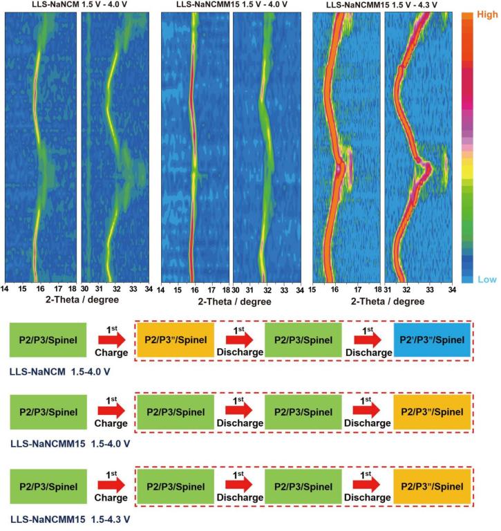 图1. 不同三相正极材料体系在不同电压窗口下的动态晶体结构演变过程