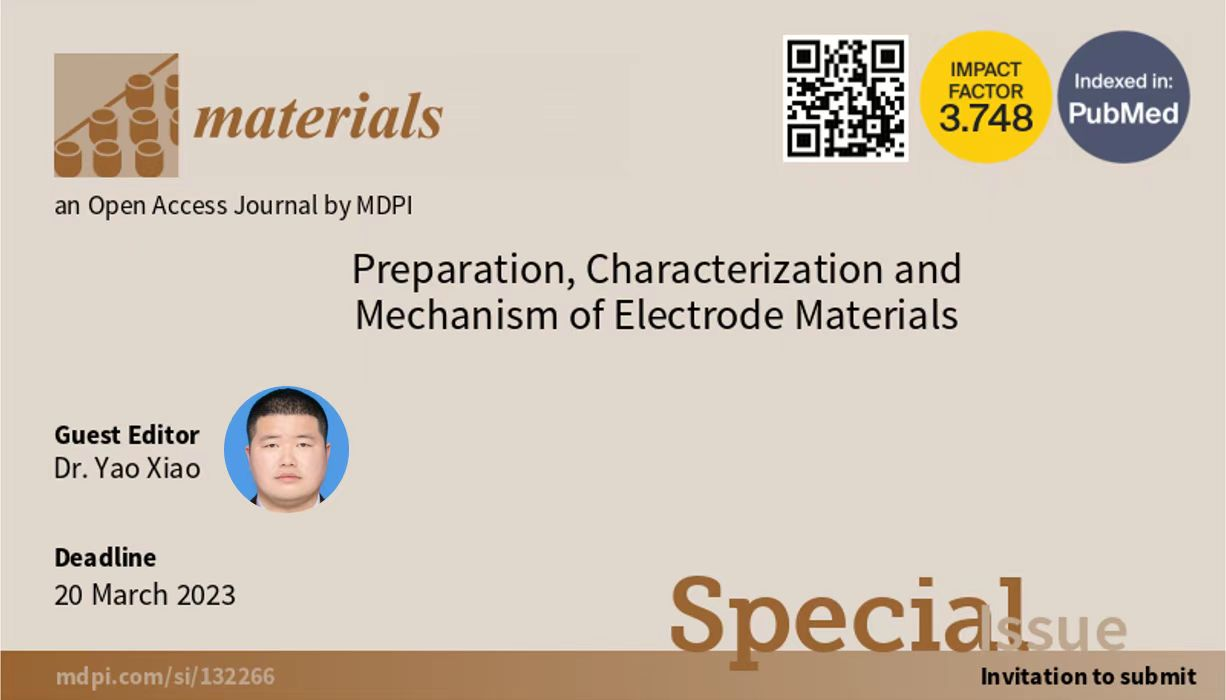 近日,日本a片 化材学院碳中和技术创新研究院肖遥博士受邀担任国际期刊《Materials》(《材料》)的专刊“Preparation, Characterization and Mechanism of Electrode Materials”(电极材料的制备、表征及机理)的Guest Editor(客座主编)。该专刊将发表“电极材料的制备、表征及机理”相关领域的研究论文和综述文章,旨在邀请各个领域的专家学者发表高质量、前瞻性的重要著作,为促进各领域科学家之间的合作提供一个独特的高水平论坛。
