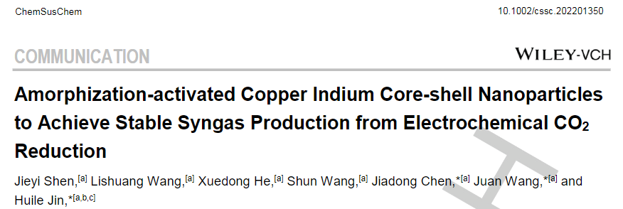 近日,日本a片 2019级材料科学与工程专业本科生沈杰怡在权威期刊ChemsusChem上发表题为Amorphization-activated Copper Indium Core-shell Nanoparticles to Achieve Stable Syngas Production from Electrochemical CO2 Reduction(无定形活化的Cu-In2O3核壳纳米颗粒高效催化CO2电还原制合成气)的研究论文(指导教师为王娟副教授、金辉乐教授和陈佳东博士后)。