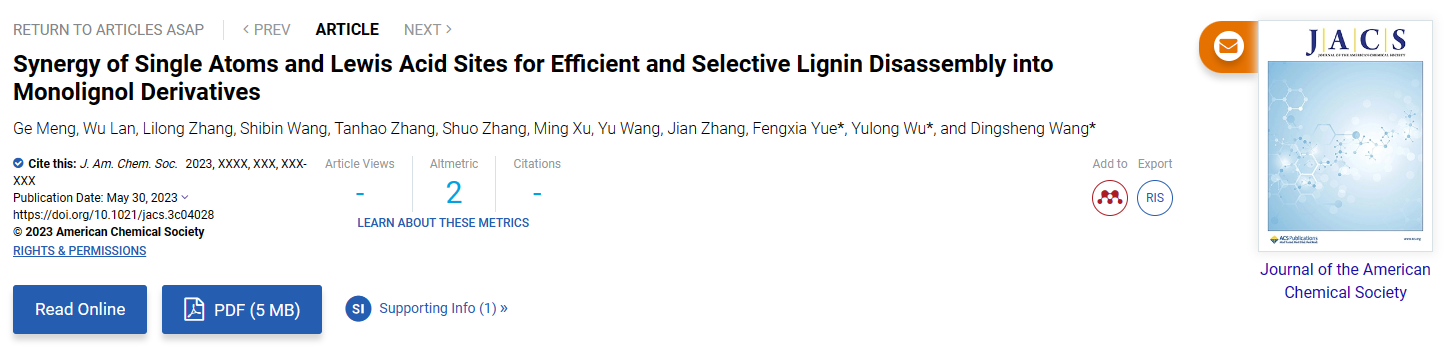 木质素是木质纤维素生物质中含量最高的芳香族聚合物,具有由C-C/C-O键连接的类苯丙基单元,其中芳醚键的比例高达50-85%,因此,通过C-O键裂解进行木质素的解聚引起了人们的较多关注,该方法也为从天然生物质资源中获得高附加值化学品提供了一种有效途径。近几十年来,已经发展出多种不同的催化转化方法来实现木质素的解聚,包括加氢裂解、氧化裂解和非氧化还原裂解。然而,由于木质素结构复杂,且具有多种转化路径,实现C-O(β-O-4)键的高效和高选择性裂解仍然是一个巨大挑战。此外,在众多芳香族单体产物中,具有Cα=Cβ侧链的单体更利于后续的功能化利用,因而更有价值,然而,解聚过程中形成的不饱和C=C键在传统催化剂和高温高压环境下具有较高的加氢、氧化或者缩合活性,从而难以保留。因此,开发一种高效的非贵金属催化剂,在惰性气氛下高效生产侧链不饱和单体仍面临挑战。近年来,单原子催化剂(SACs)由于具有接近100%的金属原子利用率和独特的电子结构,对多种多相反应表现出优异的催化活性。单原子催化的概念也为木质素分解高效催化剂的设计开发提供了巨大的机会。此外,据报道,Lewis酸性位点可以促进木质素解聚效率,然而其催化或助催化机制仍不明确。因此设计一种同时包含单原子金属位点和Lewis酸性位点的多功能催化剂来协同催化木质素解聚以实现高活性和高芳香单体选择性是一种有效策略。
