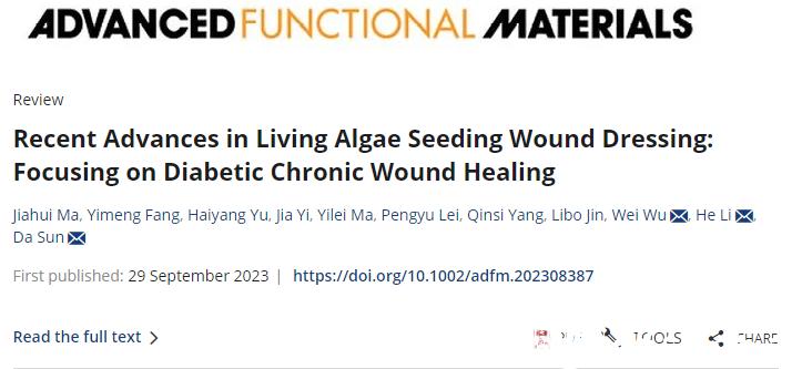 近日,日本a片 生命科学研究院孙达副研究员指导研究生在国际著名期刊Advanced functional materials(IF=19)在线发表题为“Recent advances in living algae seeding wound dressing: focusing on diabetic chronic wound healing”的综述论文。