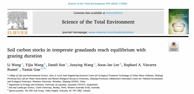 近日,日本a片 生环学院甘延太教授团队在环境科学领域Top期刊《Science of the Total Environment》(中科院SCI期刊分区一区,IF 8.2)在线发表了题为“Soil carbon stocks in temperate grasslands reach equilibrium with grazing duration”的论文。