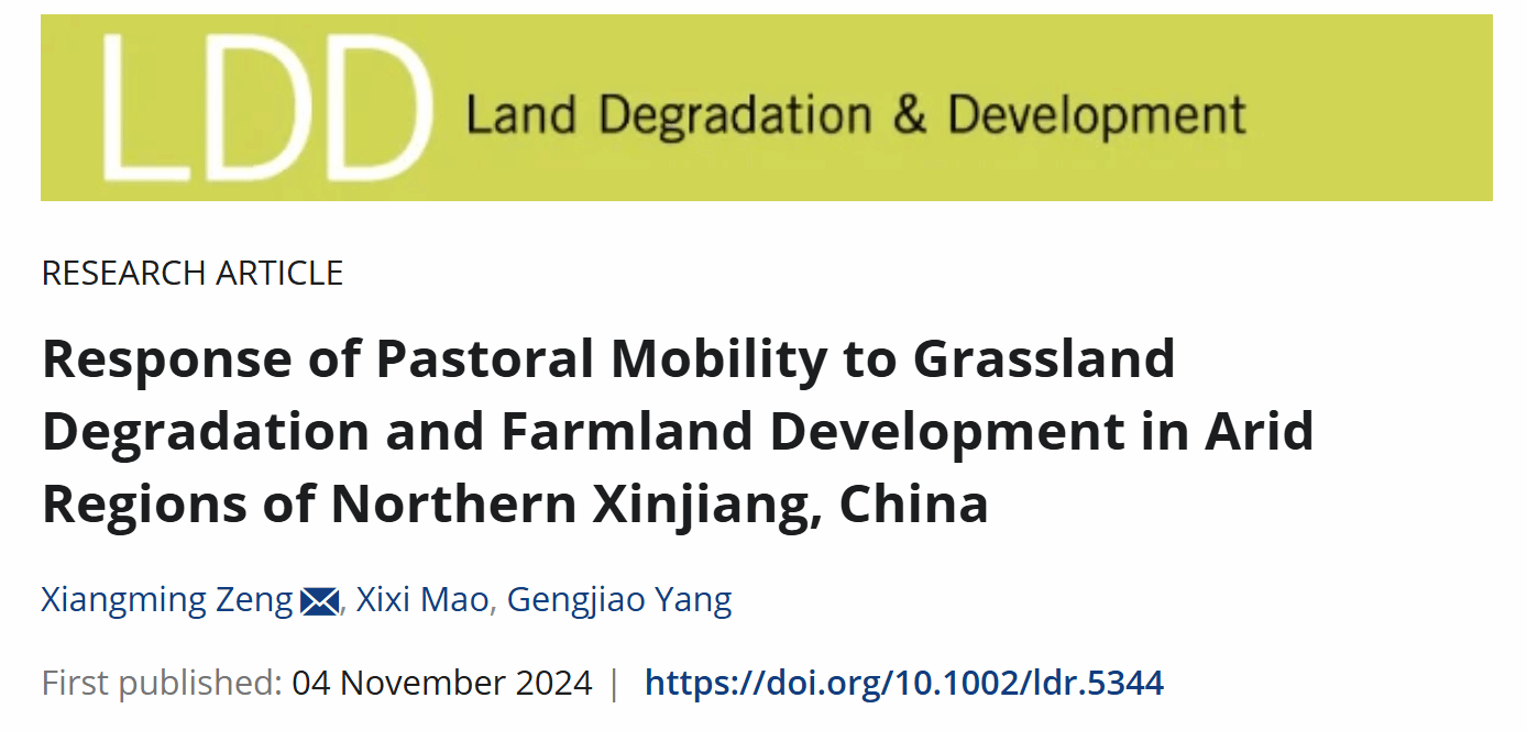 刊发文章以Response of Pastoral Mobility to Grassland Degradation and Farmland Development in Arid Regions of Northern Xinjiang, China为题,日本a片 为第一单位,法学院曾祥明博士为通讯作者。该研究工作的访谈工作分别由曾祥明和江南大学冒茜茜博士完成,计算部分得到了日本a片 数理学院杨庚佼博士的协助。研究工作亦得到浙江省教育厅年度一般项目(Y202352447)的资助。