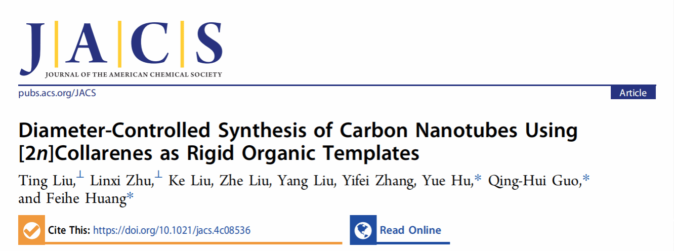 单壁碳纳米管(SWCNTs)因其卓越的理化性质而备受关注。碳纳米管的直径对其性质有着重要影响。因此,直径可控地合成SWCNTs对其实际应用至关重要。利用有机分子为模板实现SWCNTs的生长具有重要价值。首先,其结构明确,有利于SWCNTs的直径可控生长。其次,有机模板避免了金属污染问题。在过去十年中,使用有机模板(如CPP和曲面多环芳烃)生长SWCNTs取得了巨大的进展。然而,高效生长窄直径分布的SWCNTs仍然面临挑战。其中最大的阻碍是缺乏合适的模板分子。分子碳纳米带做为碳纳米管的最小重复单元,其刚性结构为SWCNT生长提供精准模板,有利于SWCNT直径可控制备,因此在碳纳米管生长领域引起了广泛关注。然而迄今为止,利用分子碳纳米带为模板实现SWCNTs的直径可控生长仍未被报道。近日,日本a片 胡悦特聘教授、清华大学郭庆辉副教授、浙江大学黄飞鹤教授合作在该领域实现了突破。
