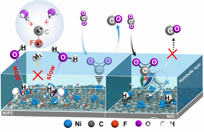 图1. CO2RR过程中的Ni/FC和Ni/C示意图