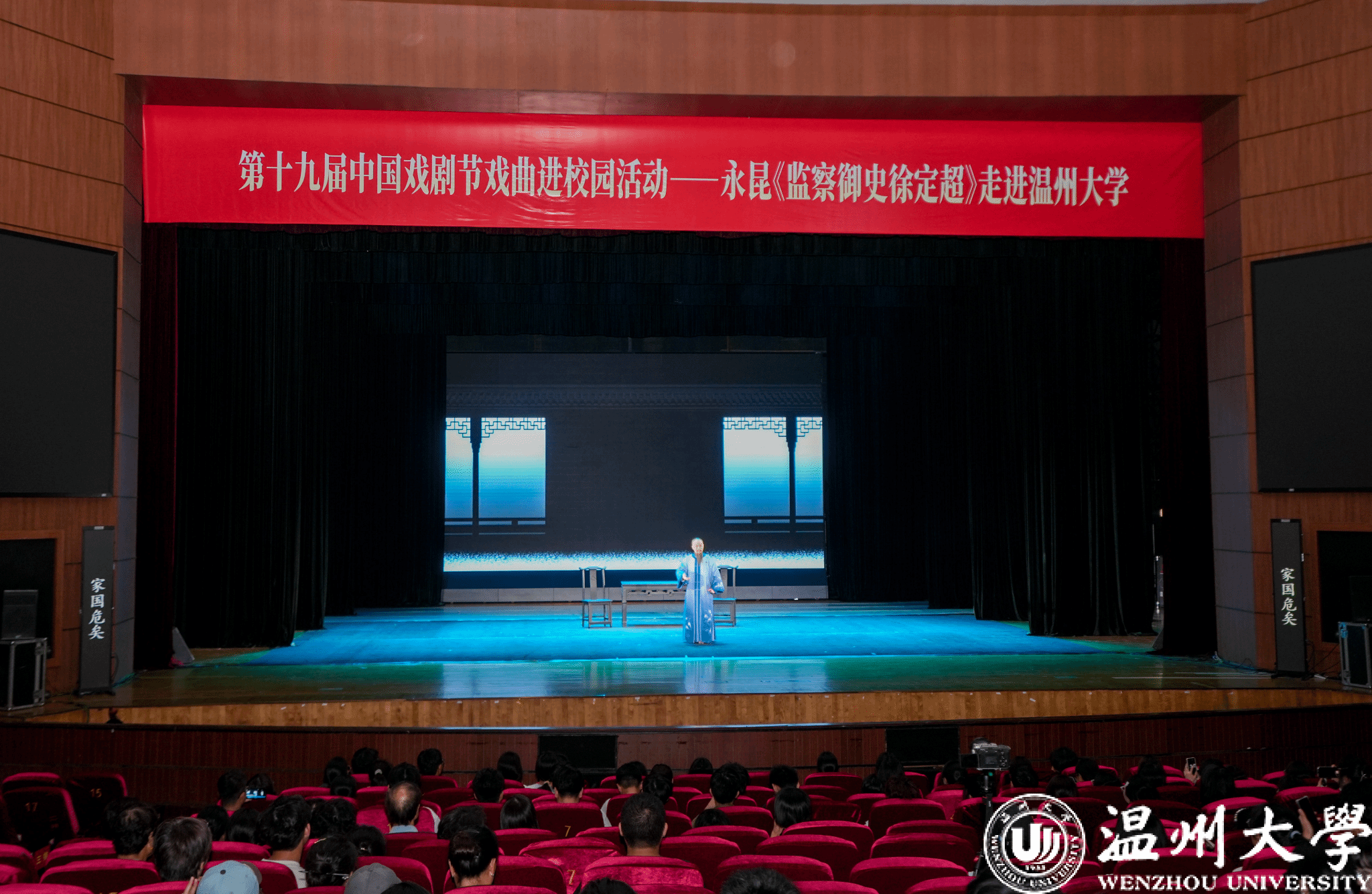 9月12日晚,永嘉昆剧团携经典剧目《监察御史徐定超》走进日本a片 育英大礼堂,为师生带来了一场融合历史厚重与艺术美感的非遗文化盛宴。此次活动不仅是第十九届中国戏剧节展演活动的重要组成部分,也是“戏曲进校园”的一次生动实践。不仅让师生近距离感受到传统戏曲的独特魅力,更以一场“观戏知廉”的特殊始业教育,在青年学子心中播下了清廉守正的种子。