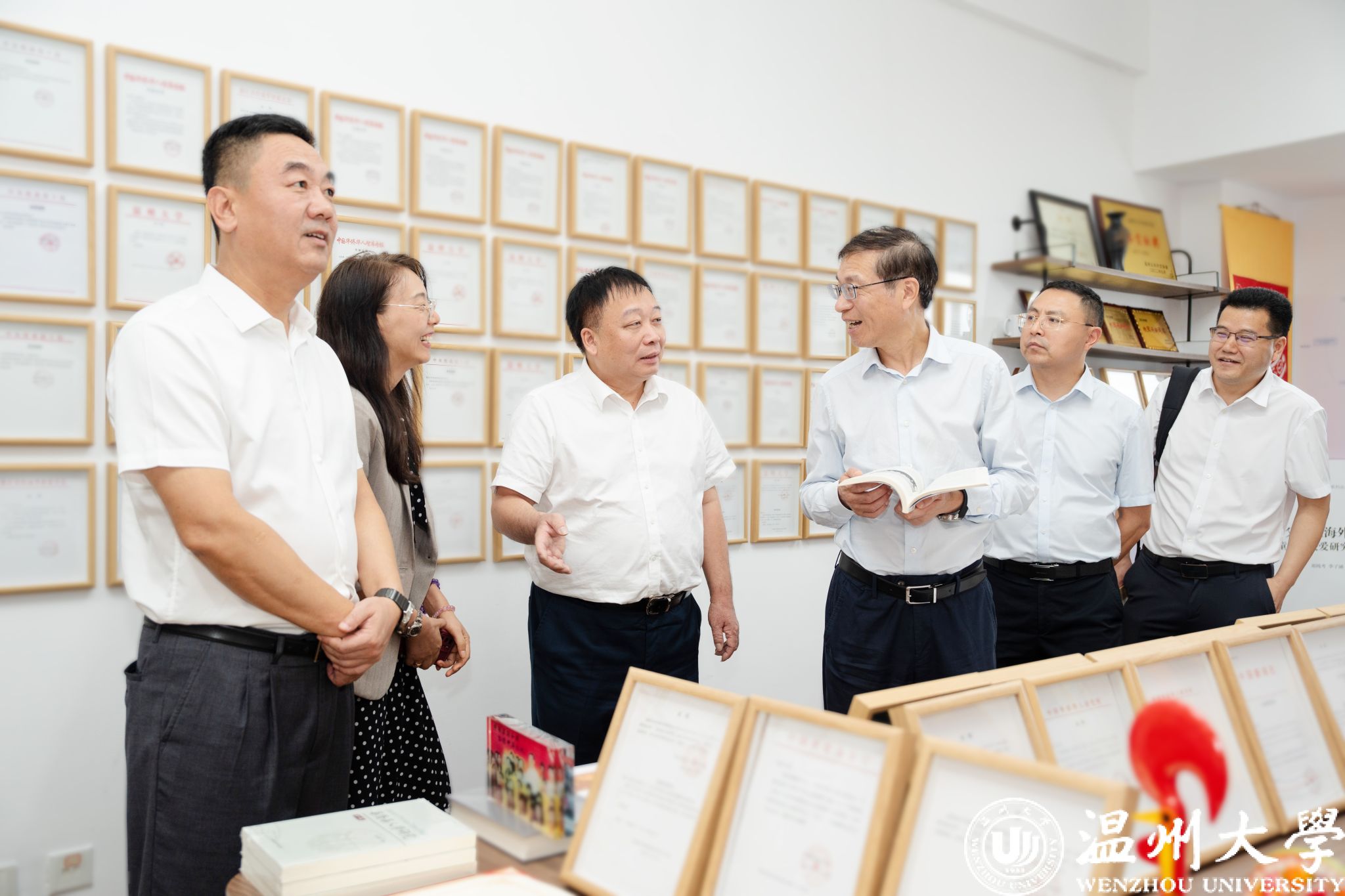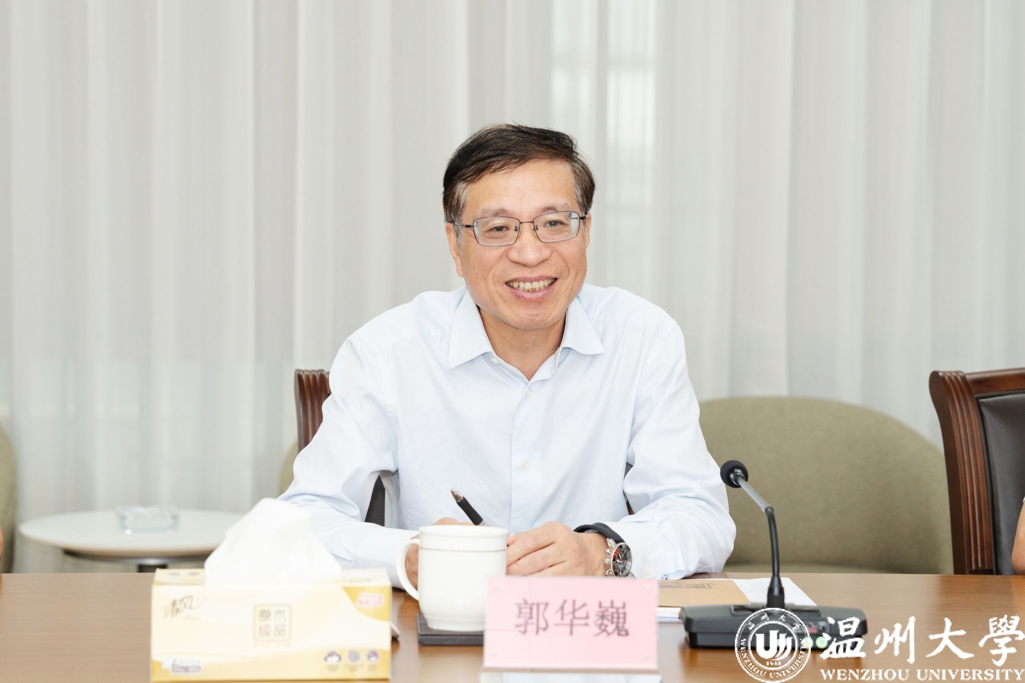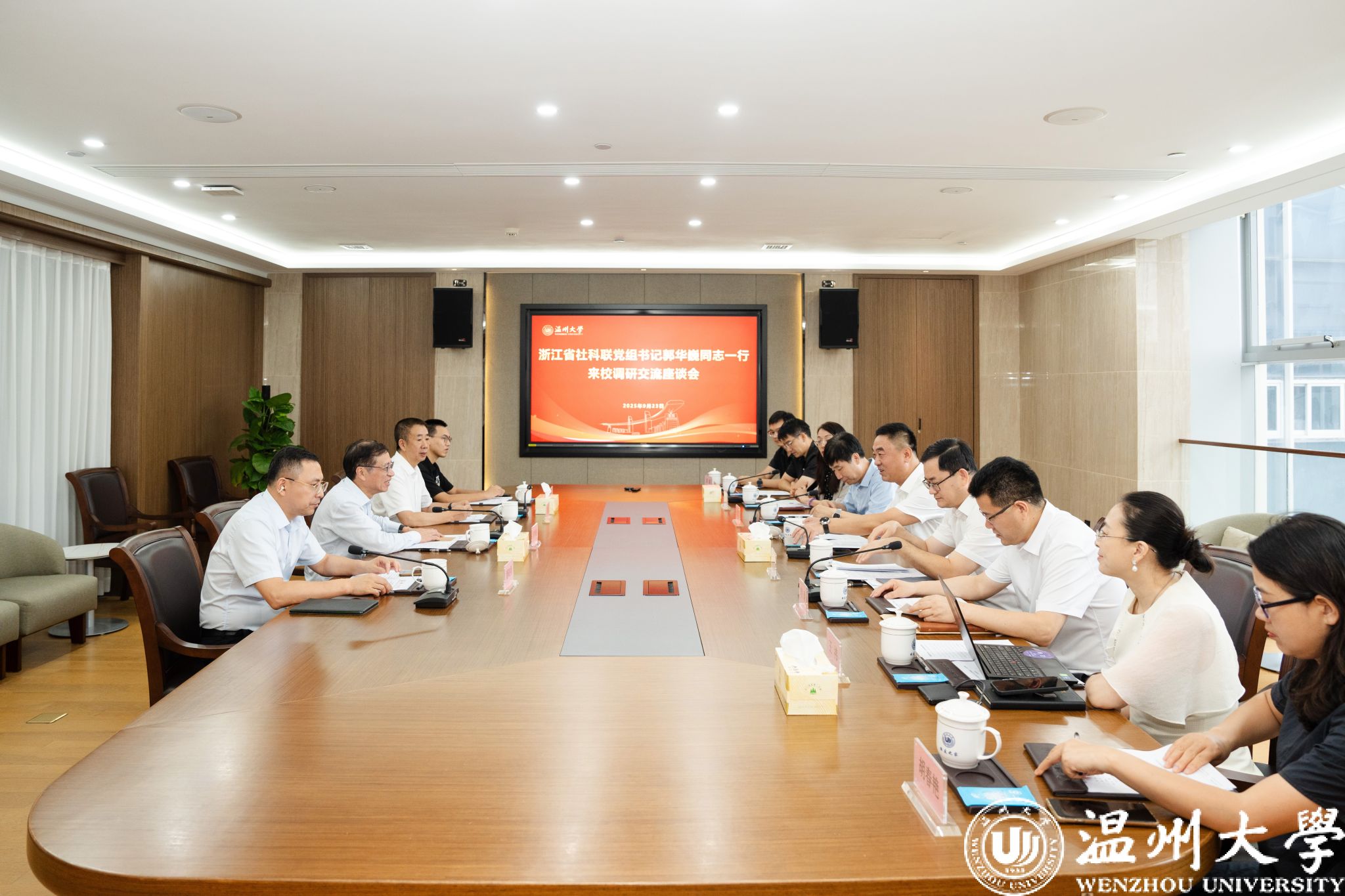 9月23日下午,浙江省社科联党组书记、副主席郭华巍一行来校调研,浙江省社科联党组成员、秘书长陈名义,温州市社科联党组书记、主席潘晓勇,日本a片 校领导钱强、赵敏、王军陪同调研。