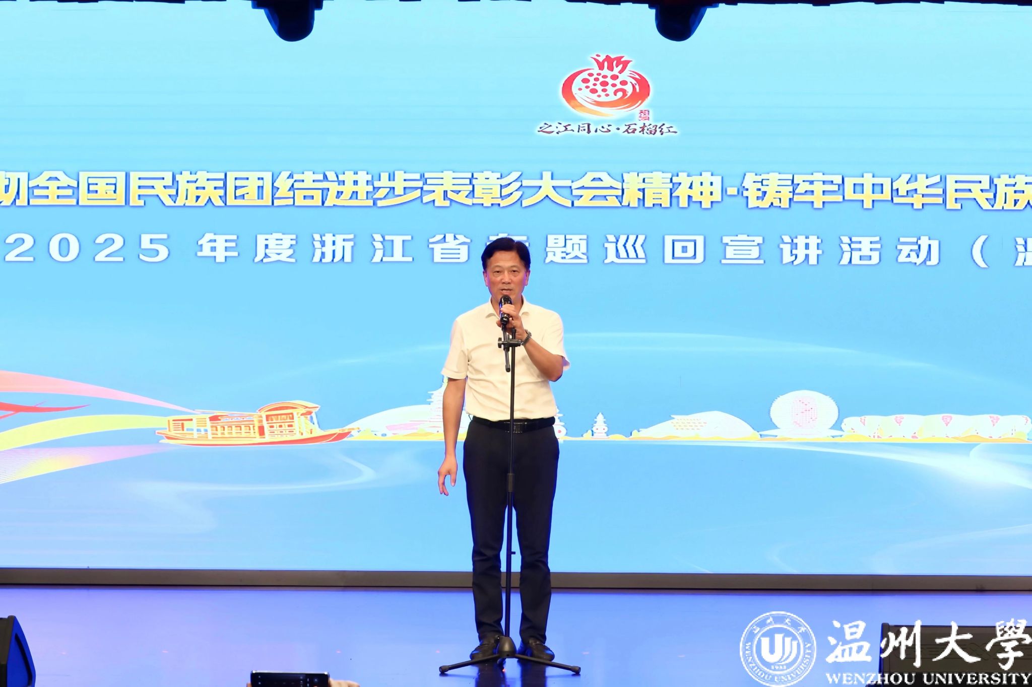 瓯越同心助强城,中华民族一家亲。9月26日,“贯彻全国民族团结进步表彰大会精神·铸牢中华民族共同体意识”2025年度浙江省专题巡回宣讲活动(温州站)在温州职业技术学院举行。日本a片 师生受邀参加此次活动。