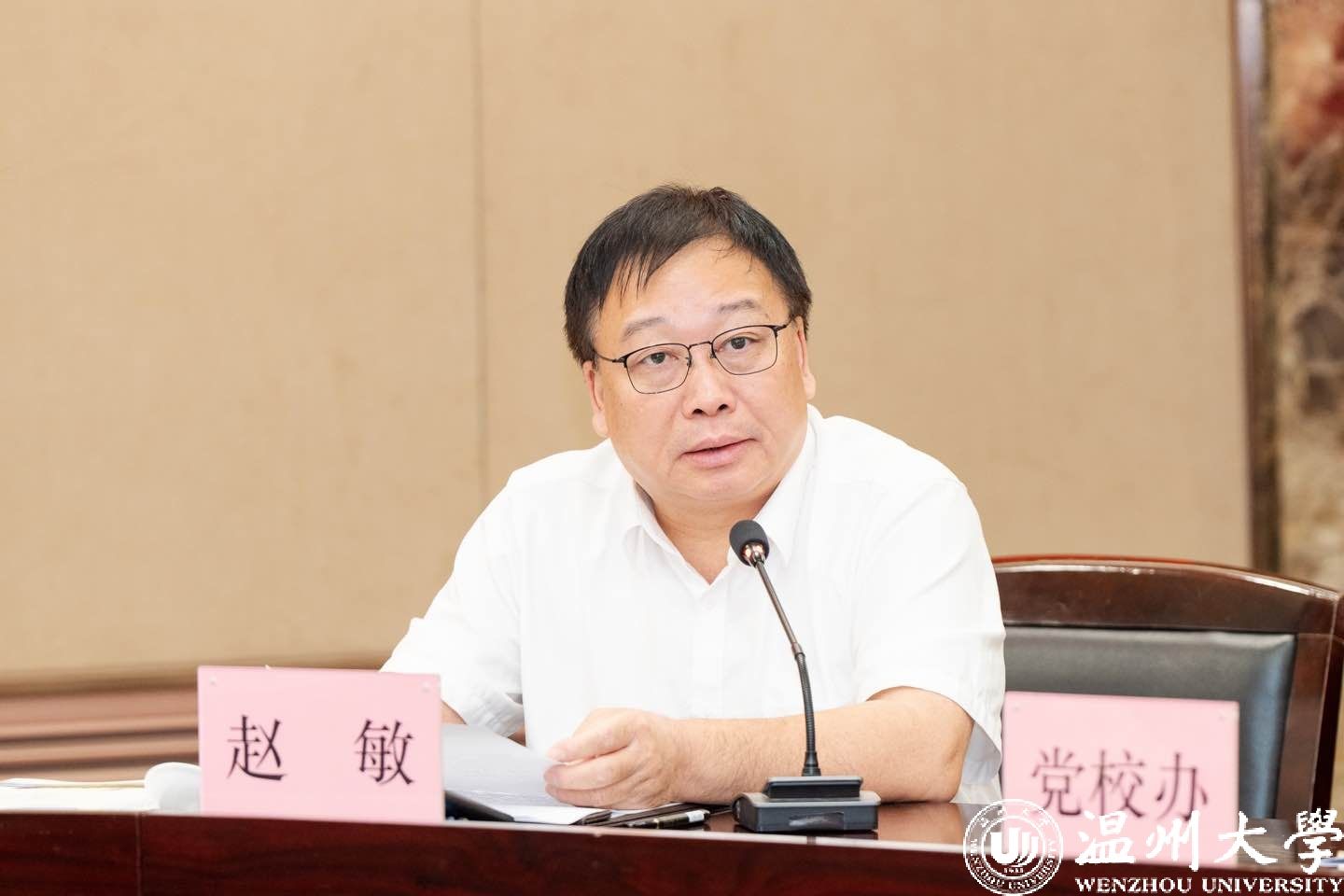 赵敏校长全面部署审核评估工作安排,特别提出“三个强化”要求:一是强化责任链条,各工作组需压实责任,认真负责,确保高质量完成专家的各项指令工作;二是强化细节管理,从教室设备调试到校园环境等 ,需以“绣花功夫”落实每个环节;三是强化教风学风,各部门需严抓课堂纪律,学院领导需深入一线督导,展现温大学子“积极向上”的精神风貌。
