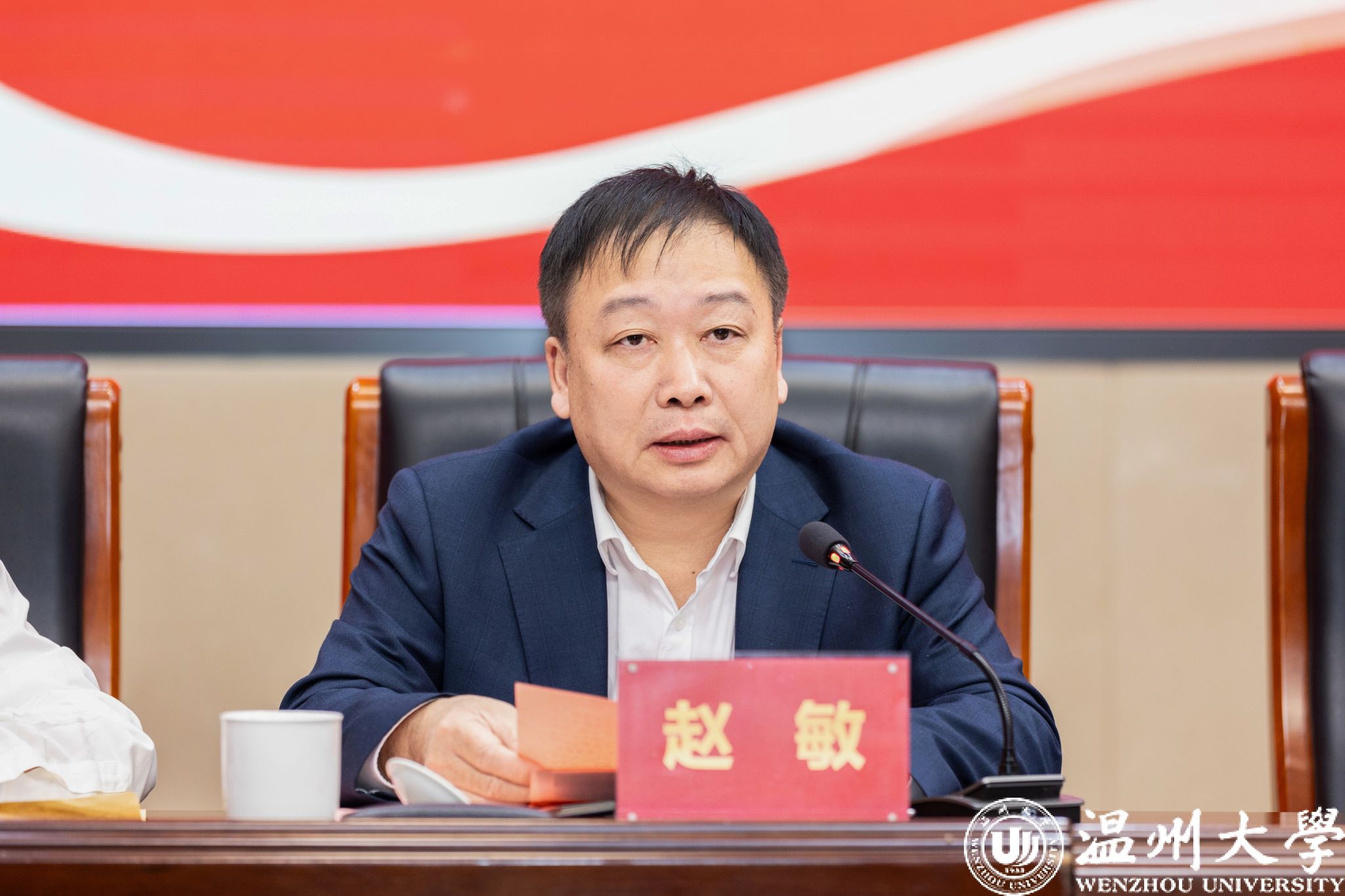 会上,校长赵敏补充汇报本科教育教学工作。他从办学实力、育人成效与评估保障三个方面作了本科教育教学审核评估补充报告。他指出,学校始终坚持“以本为本”,夯实本科教育教学核心地位,持续深化“五育并举”育人格局,推进专业与课程协同发展,创新人才培养模式,并积极推动数智赋能教育教学。他强调,入校评估既是对学校本科教育教学工作的全面检验,更是学校找准差距、补齐短板、迈向高水平大学的重要契机。学校将以开放严谨的态度全力配合专家工作,虚心听取意见建议,认真抓好整改落实,以评促建、以评促改、以评促管、以评促强,持续优化育人体系,加快建设浙江省高水平大学,努力培养更多适应时代需求、扎根瓯越大地的高素质人才,为区域经济社会高质量发展提供更坚实的人才支撑和智力保障。