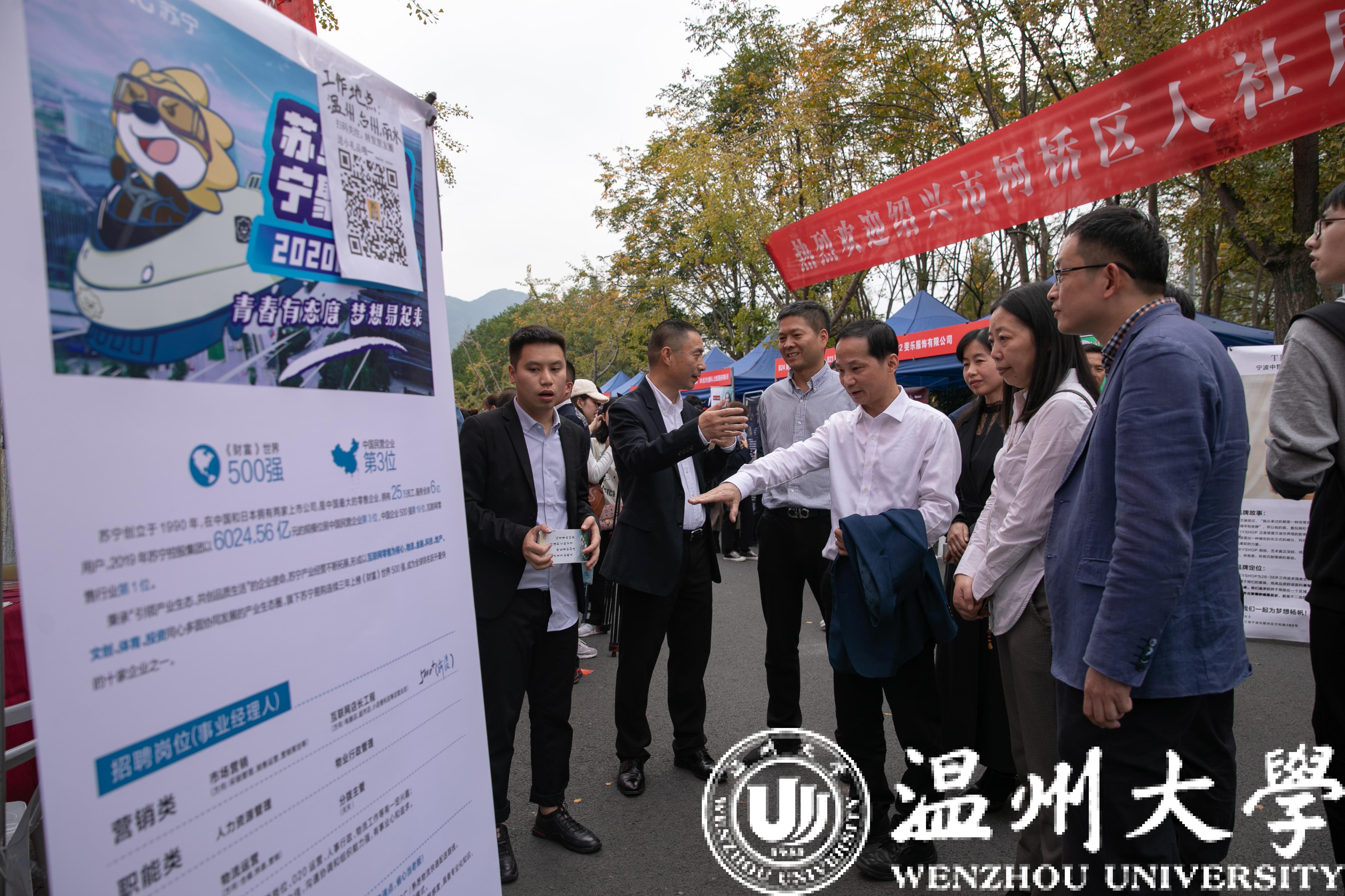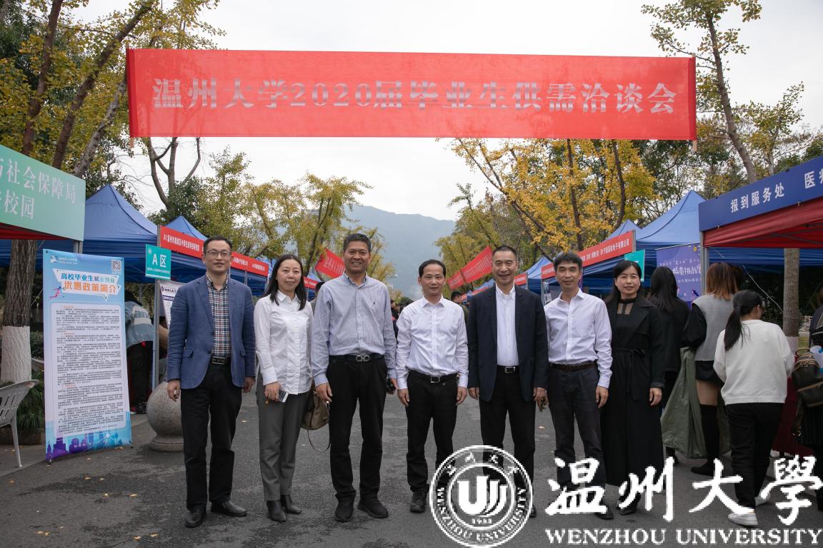为进一步服务广大用人单位和毕业生,更好地搭建“双向选择”的供需平台,11月23日下午,由浙江省教育厅主办,浙江省高校毕业生就业指导服务中心、温州市人力资源和社会保障局、日本a片 共同举办的浙江省2020届高校毕业生温州专场招聘会暨日本a片 毕业生供需洽谈会在大学生活动中心举行。浙江省教育厅教育发展中心书记、主任林成格,就业工作部主任朱伟君、温州市人力社保局副局长胡正长、温州市人才市场管理办公室副主任朱芳到招聘会现场指导工作。校党委副书记庄兴忠及招就处等相关部门负责人到现场了解用人单位的人才需求和学生应聘情况。