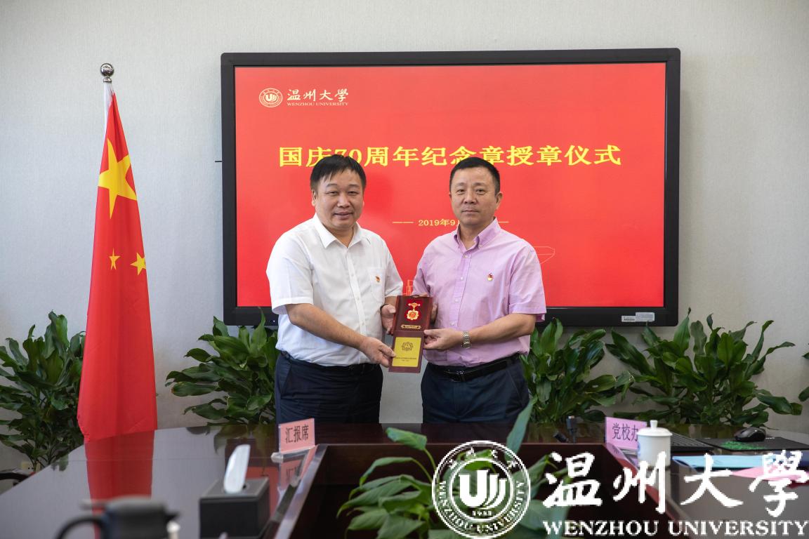 接过沉甸甸的纪念章,获奖教职工激动之情溢于言表。他们感谢组织授予的荣誉,感谢校领导们的慰问和祝福。老同志们们深情回忆了自己参加工作的经历,感慨祖国日新月异的发展和变化,并衷心祝愿祖国越来越繁荣,祝愿温大发展越来越美好!