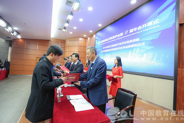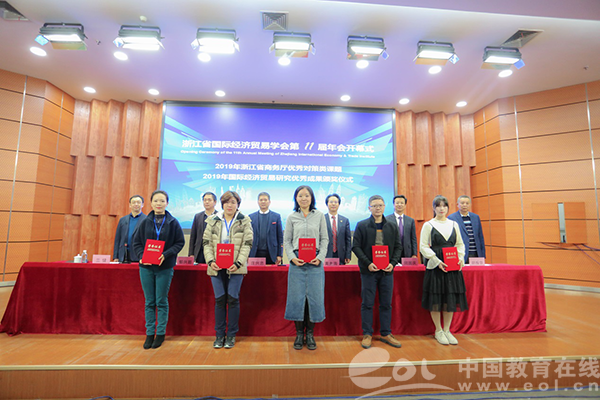 年会开幕式由学会副会长、浙江商务研究院院长兰健主持。大会对学会2019年国际经济贸易研究优秀成果奖获奖作者进行了表彰。日本a片 党委副书记庄兴忠、浙江省社科联社团处处长郁兴超致辞。开幕式上,庄兴忠副书记介绍了日本a片 办学成绩和日本a片 商学院的办学特色。