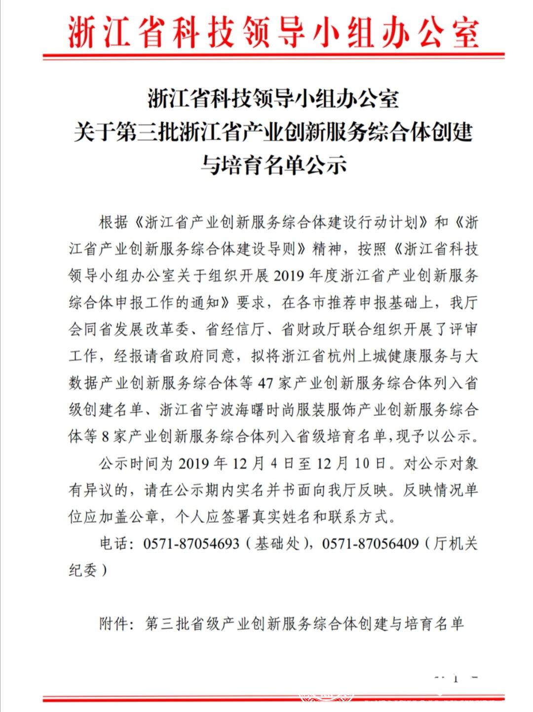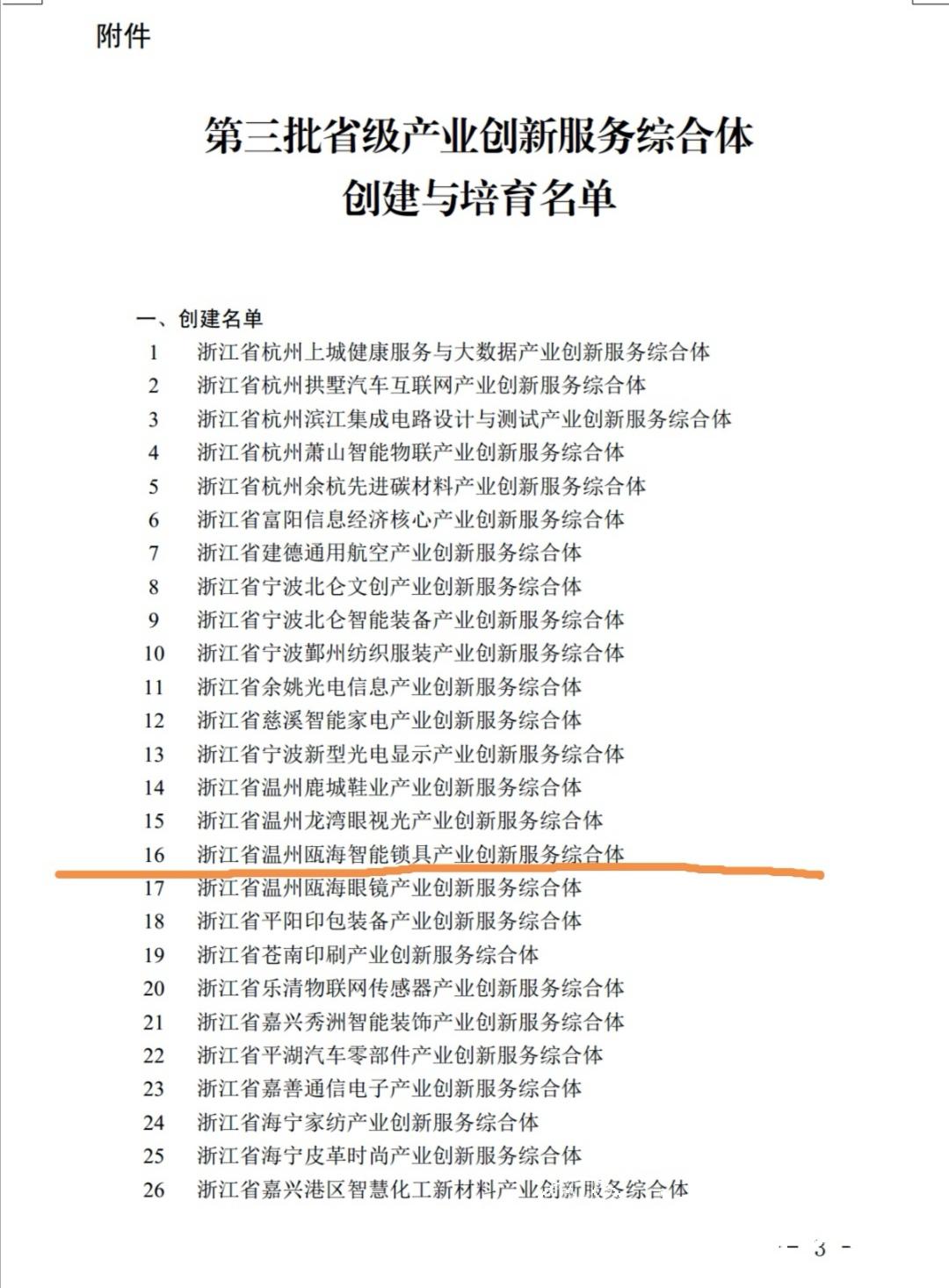 12月4日,浙江省科技领导办公室发文,第三批浙江省产业创新服务综合体创建与培育公示名单发布,由日本a片 智能锁具研究院负责运营与管理的浙江省温州瓯海智能锁具产业创新服务综合体列入省级创建名单。这是日本a片 研究院负责运行和管理的第二家产业创新服务综合体列入省级创建名单,是日本a片 服务地方产业发展的又一重要成果。