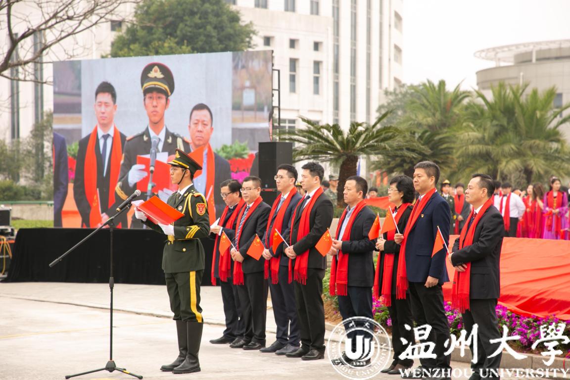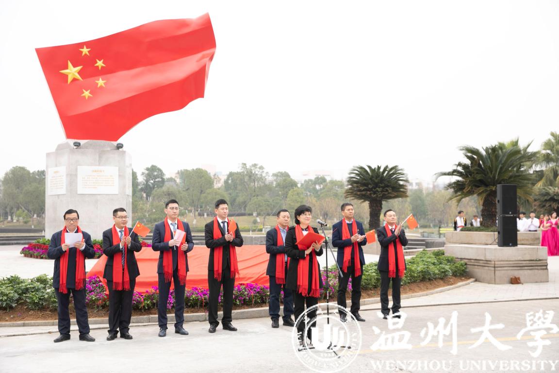 温州市委宣传部常务副部长邱小侠在致辞中指出,国内首个高校国旗广场即将在温大落成,这是日本a片 思想政治工作的一大创举,也是全市宣传思想文化建设的一件大事。近年来,日本a片 致力于把温州优秀历史文化融入校园文化,并使之成为学校思想政治教育的鲜活教材。2019年是新中国成立70周年,日本a片 先后建成了温籍数学家长廊,创作了温州原创歌剧《五星红旗》,推出了爱祖国、爱家乡、爱学校、爱他人、爱自己的系列文化品牌活动,打造了国旗广场爱国主义教育基地。这些创新之举不仅为培育德智体美劳全面发展的时代新人奠定了坚实的基础,也为引领社会风尚,教育广大市民,听党话、跟党走,推动温州高质量发展做出重要贡献。
