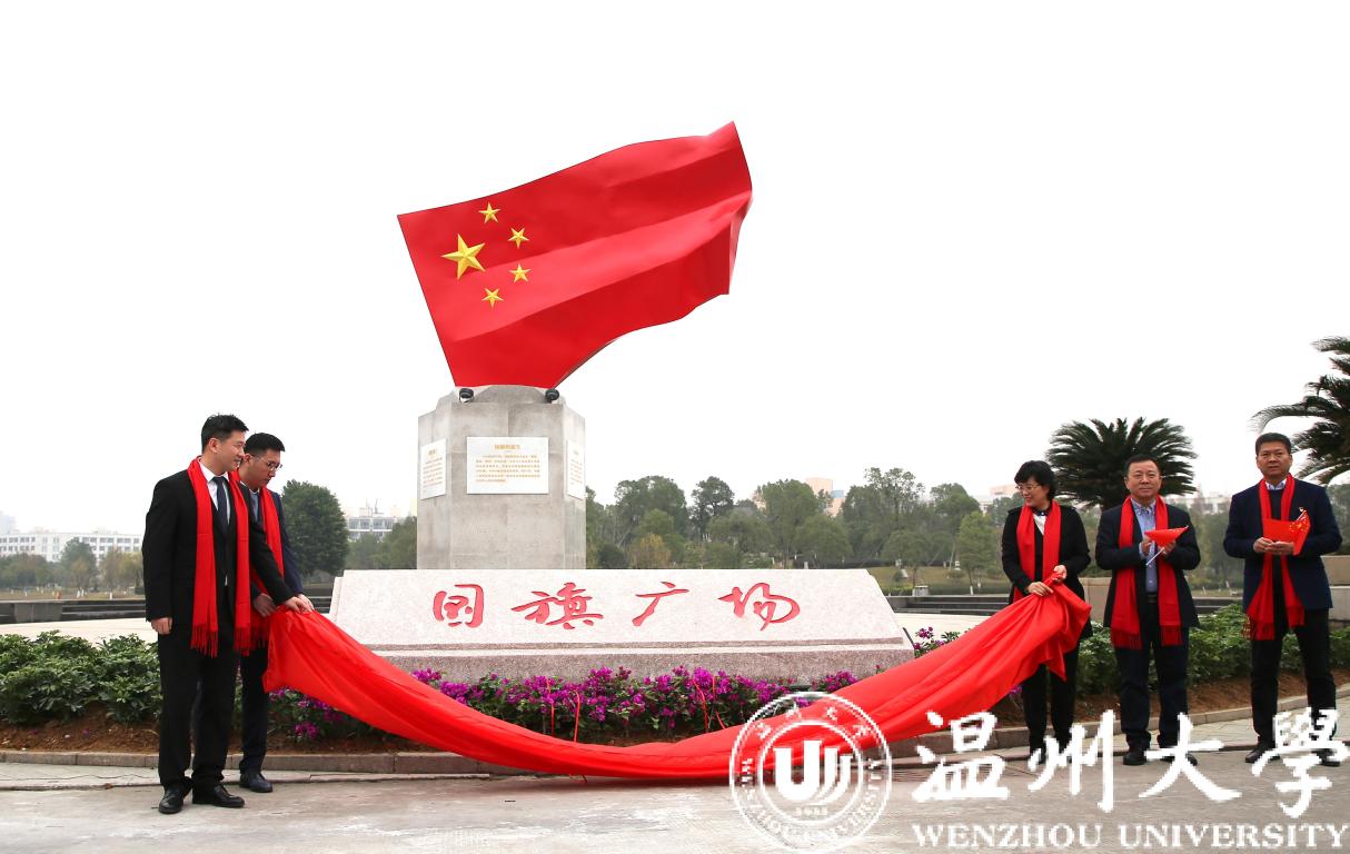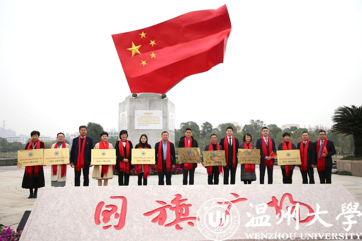 温州市委宣传部常务副部长邱小侠、华峰集团董事长尤飞宇、华峰集团副总裁尤飞锋、校党委书记谢树华为国旗广场揭牌。揭牌仪式上还举行了中小学爱国主义教育基地授牌仪式,在温八所学校成为日本a片 国旗广场首批授牌单位。