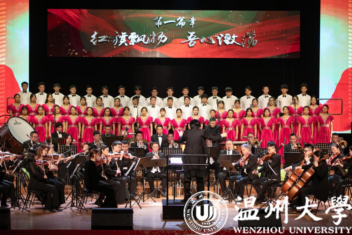紧接着,音乐会在温大音乐学院青年艺术剧院合唱团气势恢宏、激情澎湃的歌声中拉开了序幕。“我们站在太阳升起的地方,心中的旗帜永远飘扬……”第一篇章“红旗飘扬,吾心激荡”的9首歌曲均来自于日本a片 创编的大型红色歌剧《五星红旗》,其中《你也为我绘一幅画》《这是我心中的启明》等精彩篇章的再次呈现,让全校师生重温了日本a片 校友曾联松投身革命、设计五星红旗的革命精神和家国情怀。