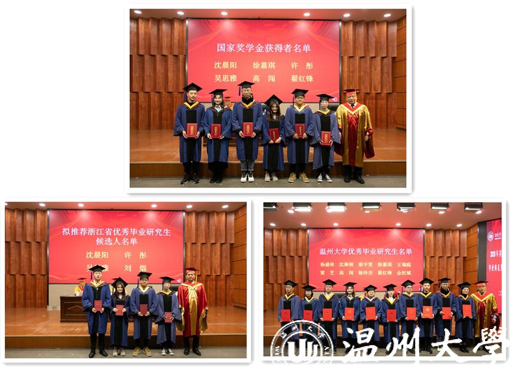 校党委庄兴忠副书记宣读了日本a片 优秀毕业研究生名单、拟推荐浙江省优秀毕业研究生名单和国家奖学金获奖者名单,校领导为20名获奖同学颁奖并合影留念。