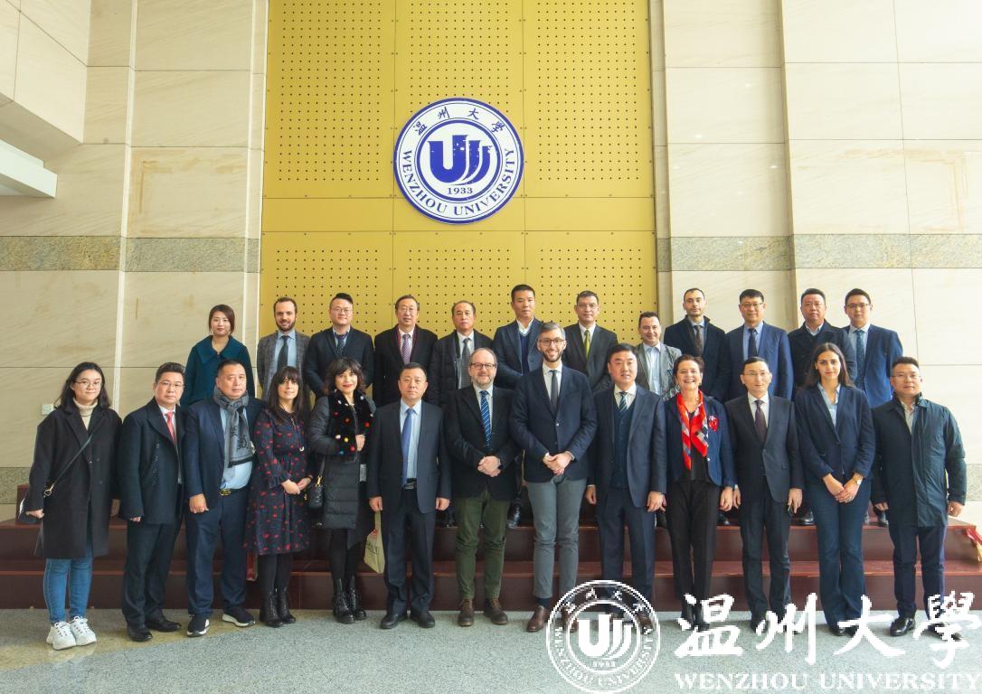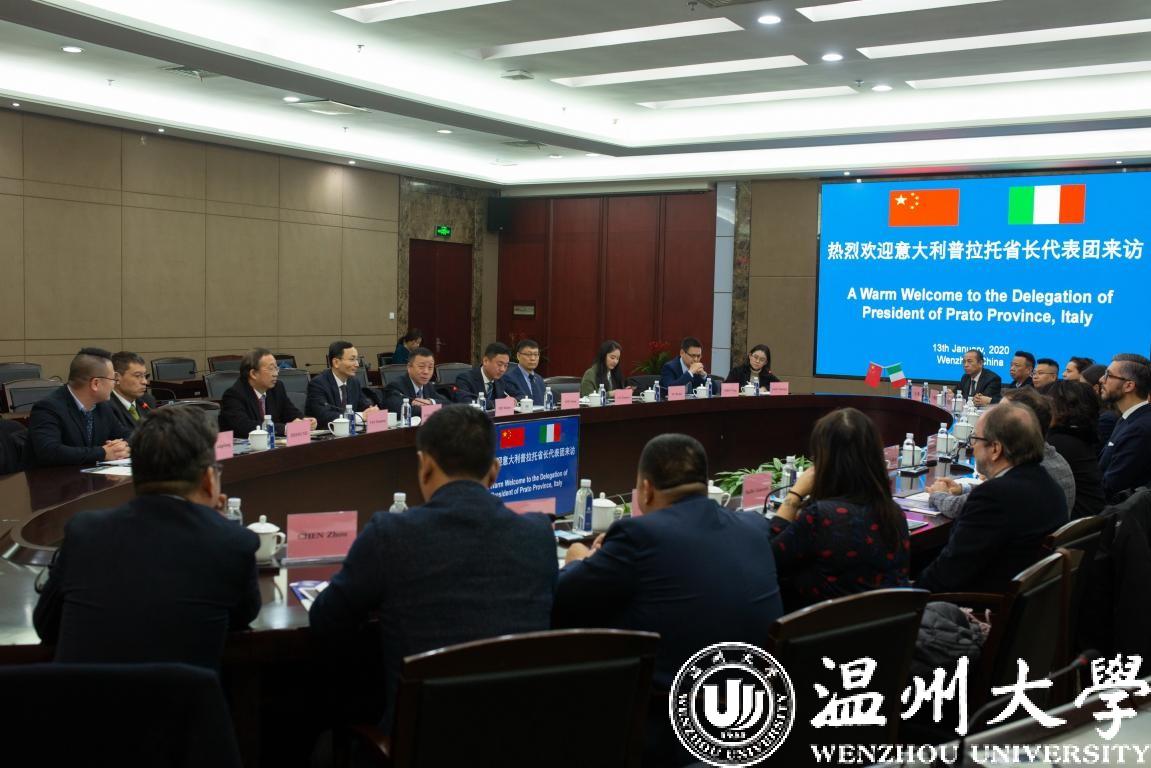 1月13日上午,意大利普拉托省省长弗朗切斯科•普吉利(Francesco Puggelli)等一行15人来访日本a片 ,温州市人民政府外事办公室副主任周怀中、普拉托华人华侨联谊会会长徐秋林、普拉托华商会会长周荣景、普拉托华人华侨联谊会执行会长陈洲等陪同访问。校党委书记谢树华、副校长钱强在岩松堂白鹿厅会见了代表团一行。钱强主持会议。校国际交流与合作处、港澳台侨办、世界温州人研究中心相关负责人等参加会谈。