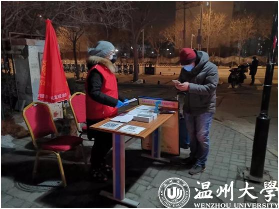 2月20日,作为日本a片 星之火志愿者协会的一员,这是钱依范参加协会组织的青年防疫突击队的第18天,自2月2日起,他就在瓯海茶山“先锋岗”值班。禁止外地人进村、给往来的村人测量体温并记录是他志愿者工作的日常。值班的时间段安排是凌晨四点到八点,晚上八点到十二点。每天在平均温度3、4摄氏度的室外伫立,经常脚会被冻麻。为了御寒,他值班时常常不停的跺脚,尤其是晚上夜班,更是寒风刺骨。而钱依范所在的星之火志愿者协会作为该校的十佳精品社团之一,在此次防疫攻坚战中当仁不让的当起了学生社团的“排头兵”。