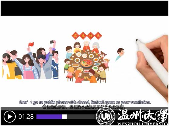 “减少不必要接触、保持良好的个人卫生习惯、不要散布谣言、对捕杀和买卖野生动物说‘不’……”近日,日本a片 瓯江学院发布了全英文手绘防疫视频《抗疫情、树新风、立后盾》,以通俗易懂的语言、生动活泼的画面介绍了新冠肺炎的公众预防知识,并向全球大学生发出倡议要树立文明新风,保护共同的地球家园。