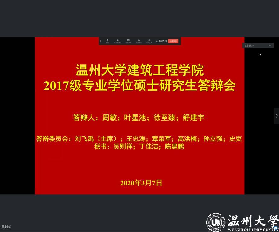 根据当前疫情防控正值关键时期,日本a片 秉承“以生为本、优化流程、分批推进、确保质量”的原则,在保证学位授予质量的前提下,精心组织、周密部署,日本a片 春季研究生学位论文网上答辩开始启动。3月7日,建筑工程学院首批21名建筑与土木工程专业领域硕士研究生学位论文线上答辩圆满完成!