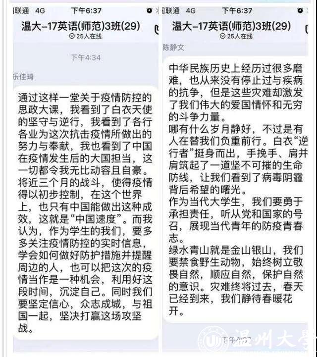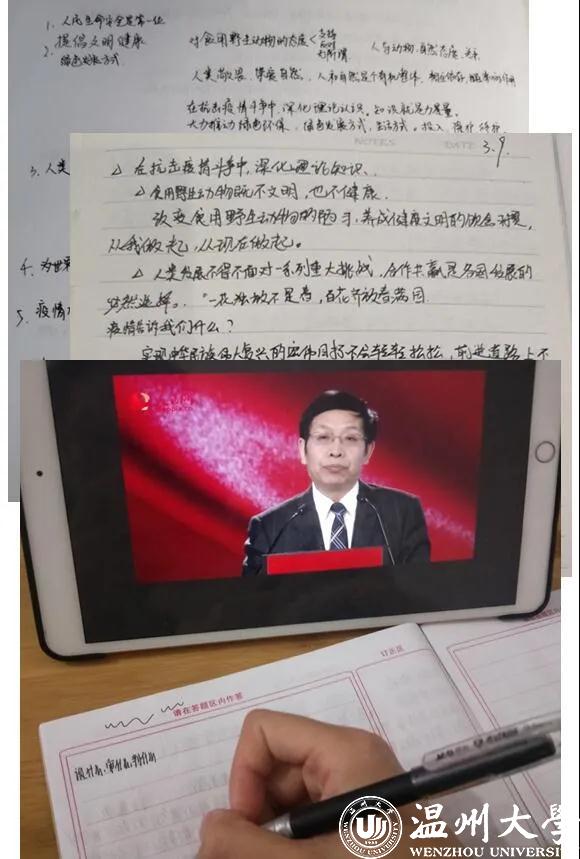 马克思主义学院副院长吴志敏也倍感振奋:“思政大课给我们带来了理性的思考、深度的解析和激荡人心的力量。作为高校思政工作者,我们要善于用时代大课引领当代青年大学生成长,让思政课与世情国情社情紧密结合。”他表示要创新育人手段,充分发挥“互联网+教育”的功能,把疫情防控阻击战作为生动的思想政治课素材,赋予高校思政教育时代的广度与厚度。“听完思政大课,作为教师,我们要带领学生,在战疫关键时刻,怀揣一颗赤子之心,认真学习、积极服务,用万众一心、众志成城、滴水穿石的精神和实际行动来守护我们的家园。”外国语学院学生辅导员单伟乐在学习后谈到。