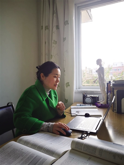 陈翊老师通过网络为留学生授课。