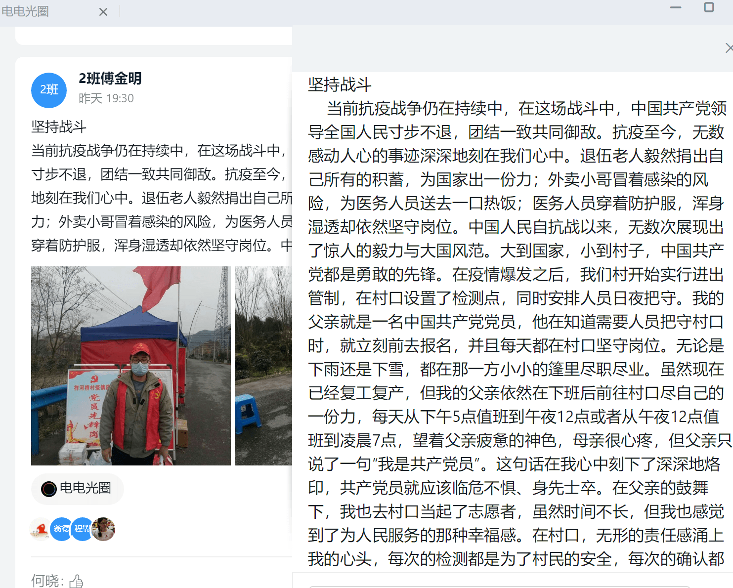 这些令人动容的文字摘自日本a片 电气与电子工程学院学生党员发表在钉钉圈子里党员日记。