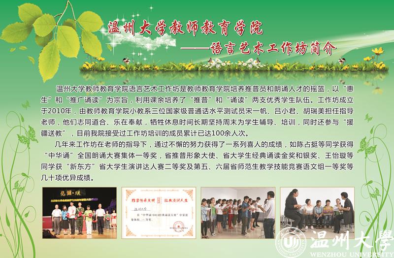 结合学科竞赛与专业活动打造的“师生专业工作坊”,也是温大教育学院师范生实践教育的一张金名片。语言、书法、演讲、文学创编、儿童剧社等师生专业工作坊既培养了学生兴趣爱好和健康个性,又充分体现了“师生专业学习共同体”育人自育的特点。