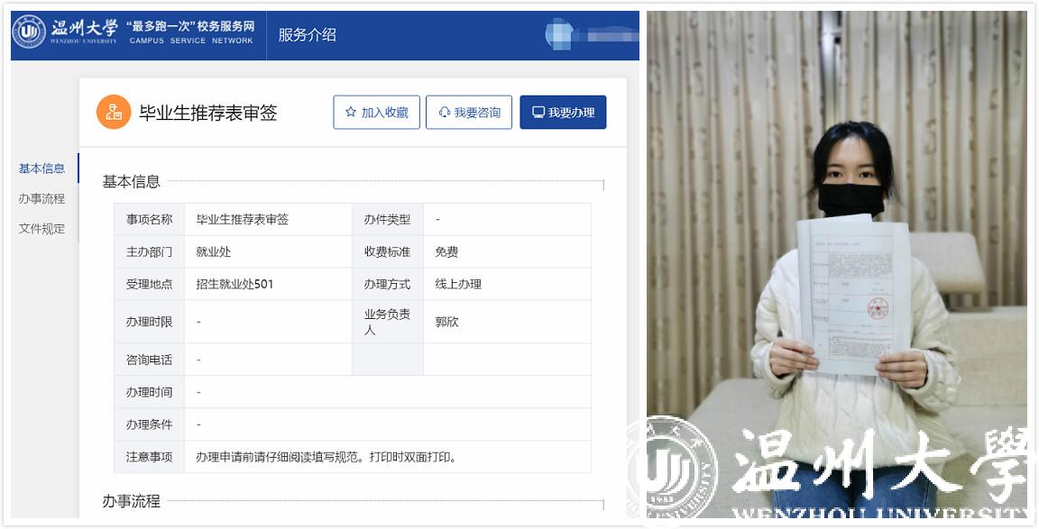当前,全国各地正加快复工复产进度,劳动力“刚需”出现较大缺口,高校毕业生求职正在火热进行中。日本a片 商学院16财务专业的毕业生朱怡琛同学在电脑前打开学校的“最多跑一次”校务服务平台,填写《毕业生就业推荐表》提交审签申请;学校负责审批的老师即刻在手机上收到提醒通知,并及时完成审核和审批工作。朱怡琛很快就收到审签通过通知,自行在电脑上打印带有学校电子印章的《毕业生就业推荐表》,提交给用人单位,开始求职之路。