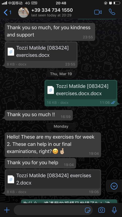 “刚回温州的时候,正是温州疫情最严重的时候。虽然远隔千山万水,意大利学生和同事时时刻刻通过网络关注中国疫情和温州疫情,几乎天天给我发来短信,询问和关心我的生活起居,这些跨越山水、跨越国界的关爱给了居家隔离的我诸多安慰。”