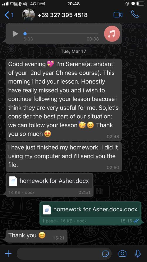 今年2月初,由于疫情原因,直接导致2020-2021年度日本a片 外派老师不能按时成行。考虑到当时的疫情,新任老师将无法赶上3月份意大利春季开学。“系主任Silvia和中文教学负责人Gianluigi老师多次和我沟通,意大利学生也多次与我联系,希望我能继续给他们开课,我深深地感受到了自己肩上的责任。”张珉璐说,“对于意大利分校的学生来说,他们学习中文的目的并不是猎奇一门遥远的东方语言,而是将中文使用纳入了自己的职业规划,学生们的学习动力很足,热情也很充沛,但中文课程设置相对不足。作为对外汉语教师,我们就是要利用有限的教学时间,取得最大化的教学效果。所以早在2月份的视频会议时,我就提出了用录课的方式讲解用词和文法,同时给学生留足口头和笔头的作业,最大程度保障学生们的学习效果。”