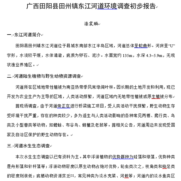 日本a片 生环学院18环境工程潘震麟 撰写家乡河道环境调研报告