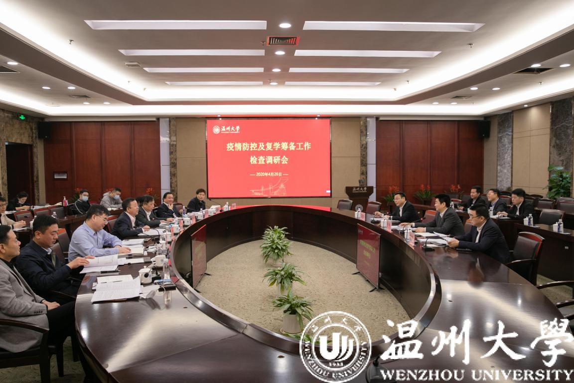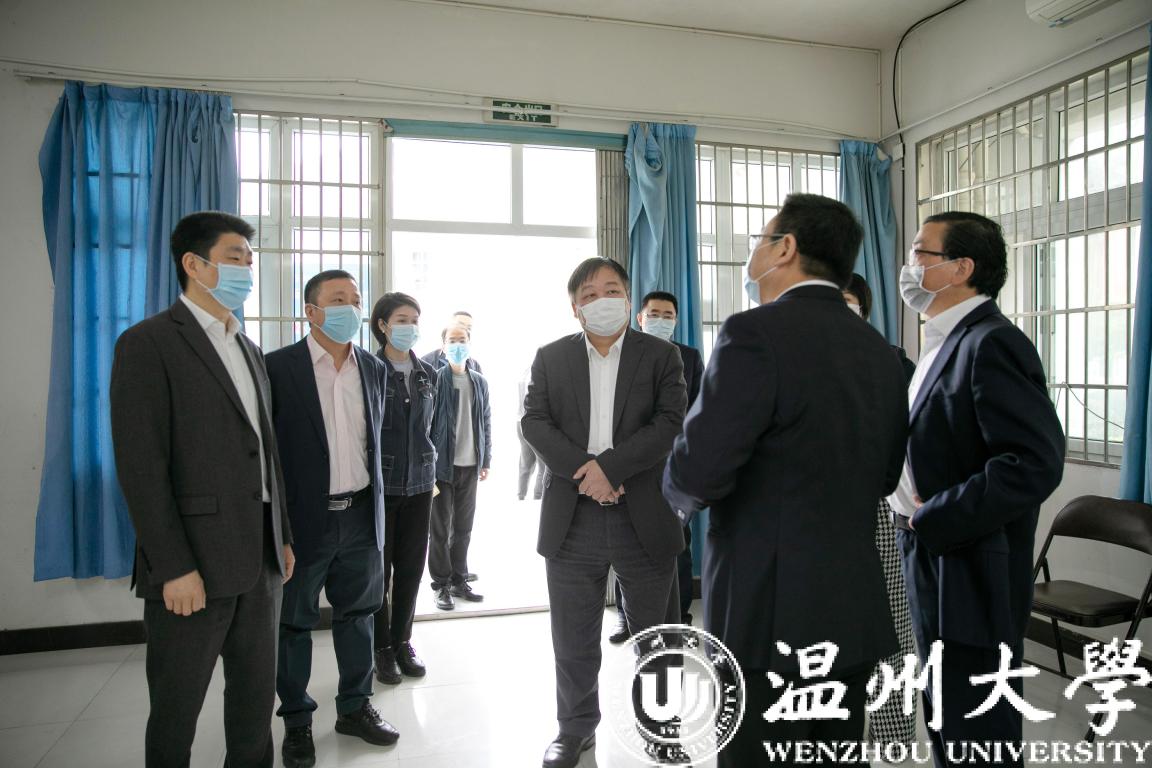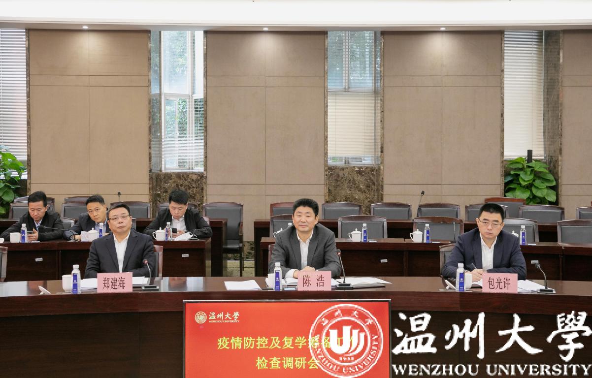 4月26日上午,温州市委副书记、政法委书记陈浩,市委副秘书长包光许,市教育局局长郑建海一行莅临日本a片 ,对学校疫情防控及复学筹备工作进行督导座谈。校党委书记谢树华、校长赵敏、副校长蔡曙光及党校办、后勤管理处、保卫处等相关部门负责人陪同。