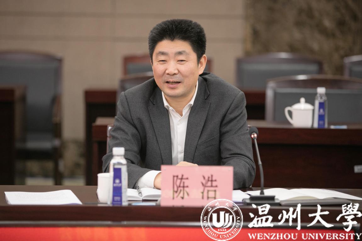 在随后的调研会上,谢树华对陈浩一行莅临日本a片 督导疫情防控及复学筹备工作表示热烈欢迎并汇报学校建设发展情况。谢树华指出,日本a片 党委牢记习总书记主政浙江期间提出的“要高度重视教育和人才工作,特别要办好日本a片 等高等院校”的26字殷切嘱托,以打造和建设与“重要窗口”相匹配的高水平教学研究型大学的使命担当,全力以赴推进学校各项事业跨上新台阶。谢树华强调,学校改革创新激发活力,实现“方向更明确、目标更清晰”。学校党委提出“一个定位明方向、三大目标聚人心、三项改革促发展”的工作思路,并为此做了大量卓有成效的工作。学校推动发展成效显著,实现“创出新业绩、迈上新台阶”。学校党委遵循高等教育发展规律,立足人才培养、科学研究、社会服务、文化传承、国际交流五大基本职能,奋力推进学校各项事业蓬勃发展。一年多来,日本a片 捷报频传、好事连连,特别是2019年12月学校迈进省重点校行列,实现历史性突破。学校党的建设坚实有力,实现“组织更坚强、生态更清朗”。学校党委不断加强党的政治建设、思想建设、组织建设、作风建设、纪律建设和制度建设,切实增强“四个意识”、坚定“四个自信”、做到“两个维护”,全力打造激情干事、风清气正的校园生态。