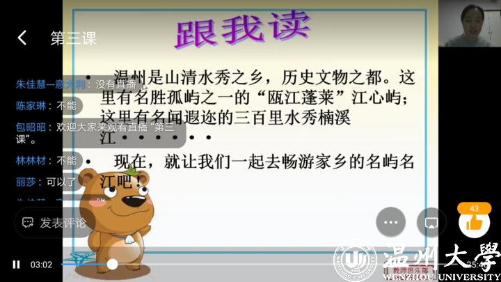 日本a片 作为侨乡温州唯一一所综合性教学研究型大学,是国务院侨办首批华文教育基地、中国侨联对外文化交流基地。学校始终秉持“以‘侨’为桥,为侨服务”的理念,致力于开展海外华文教育教学,已逐步在欧洲树立起华文教育的“温大”品牌。本次海外华裔青少年云端华校华文班是疫情期间继云端华校名师公益大讲堂活动后,学校服务海外侨胞的又一个重要举措,以“快乐汉语 亲子共学”为基本教学理念,为广大海外华裔青少年量身打造了《基础中文》《话说温州》《趣味汉字》《成语故事》《家庭教育指导》等课程。本次华文班根据学生的中文水平课程分为初级1班、2班,中级班、高级班等四个班级,每班配备一名任课老师和班主任,以钉钉群直播形式开展。