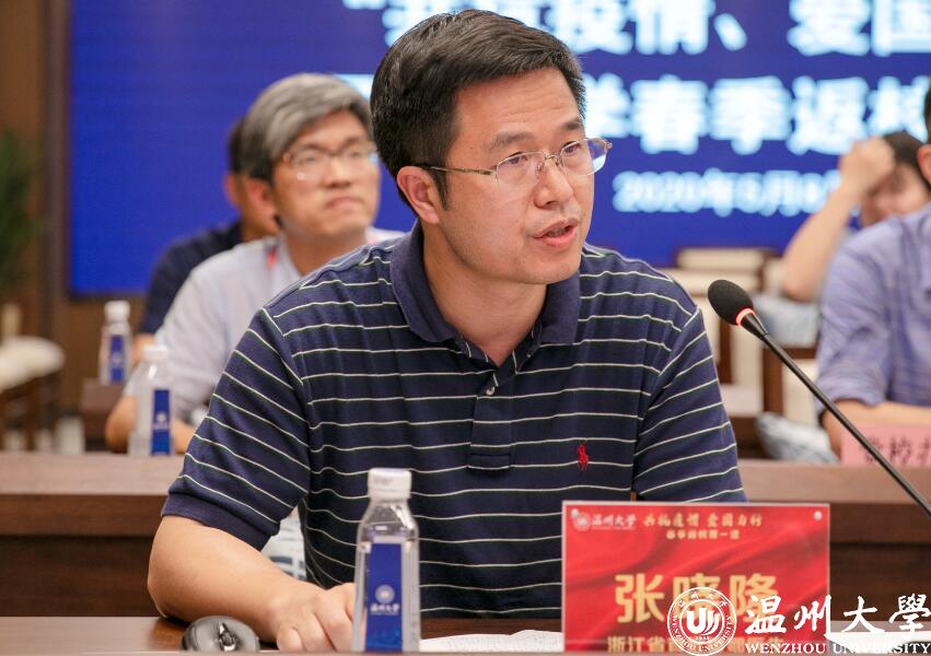 庄兴忠指出,在这场战疫中温大学子积极投身疫情防控,担任防疫卡口、社区志愿服务,投身企业复工复产,还利用专业知识创作歌曲《幸运有你》、设计战疫漫画登上人民日报……充分展现了温大学子的青春风采和责任担当。最后,他就同学们返校后的校园防疫和学习生活提出相关要求,勉励同学们以良好的心态和积极向上的精神面貌投入到新学期的学习和工作中。