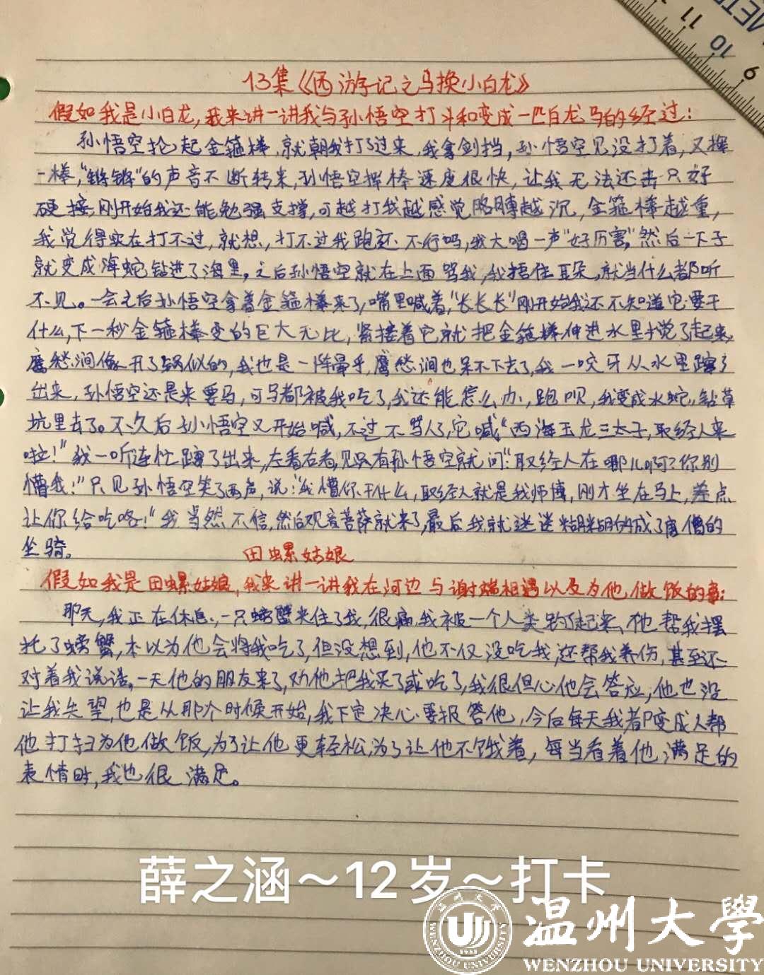 “悟空啊悟空,也不知道你还会不会回来……”5月12日,来自意大利的薛之涵小朋友在学习群中“打卡”《西游记——第12集“紧箍咒”》。这是她参加日本a片 举办的首届“亲情中华·为你讲故事”网上夏令营的第12天,之涵妈妈夸她“中文越说越流利,每天都有进步”。