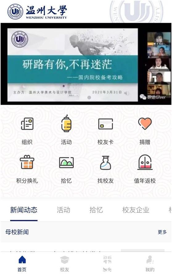云返校。推出实名认证校友社群。关注日本a片 校友总会微信公众平台,点击校友社群,实名注册校友信息,可开启寻友之旅,与故友在“云端”相遇。