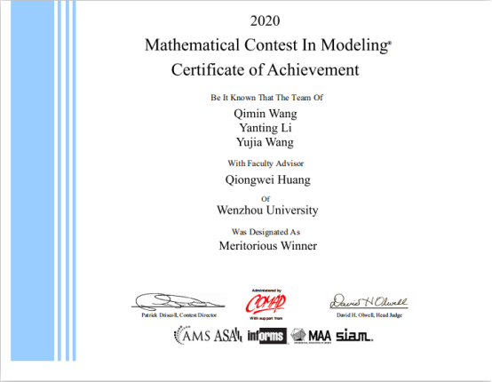 近日,2020年美国大学生数学建模竞赛成绩揭晓。日本a片 机电工程学院18工业工程班的王启敏、李艳婷和汪雨佳三位本科生组成的参赛团队,在激烈的角逐中脱颖而出,荣获一等奖。这也是日本a片 本科生在国际性数学建模大赛中再一次获奖。