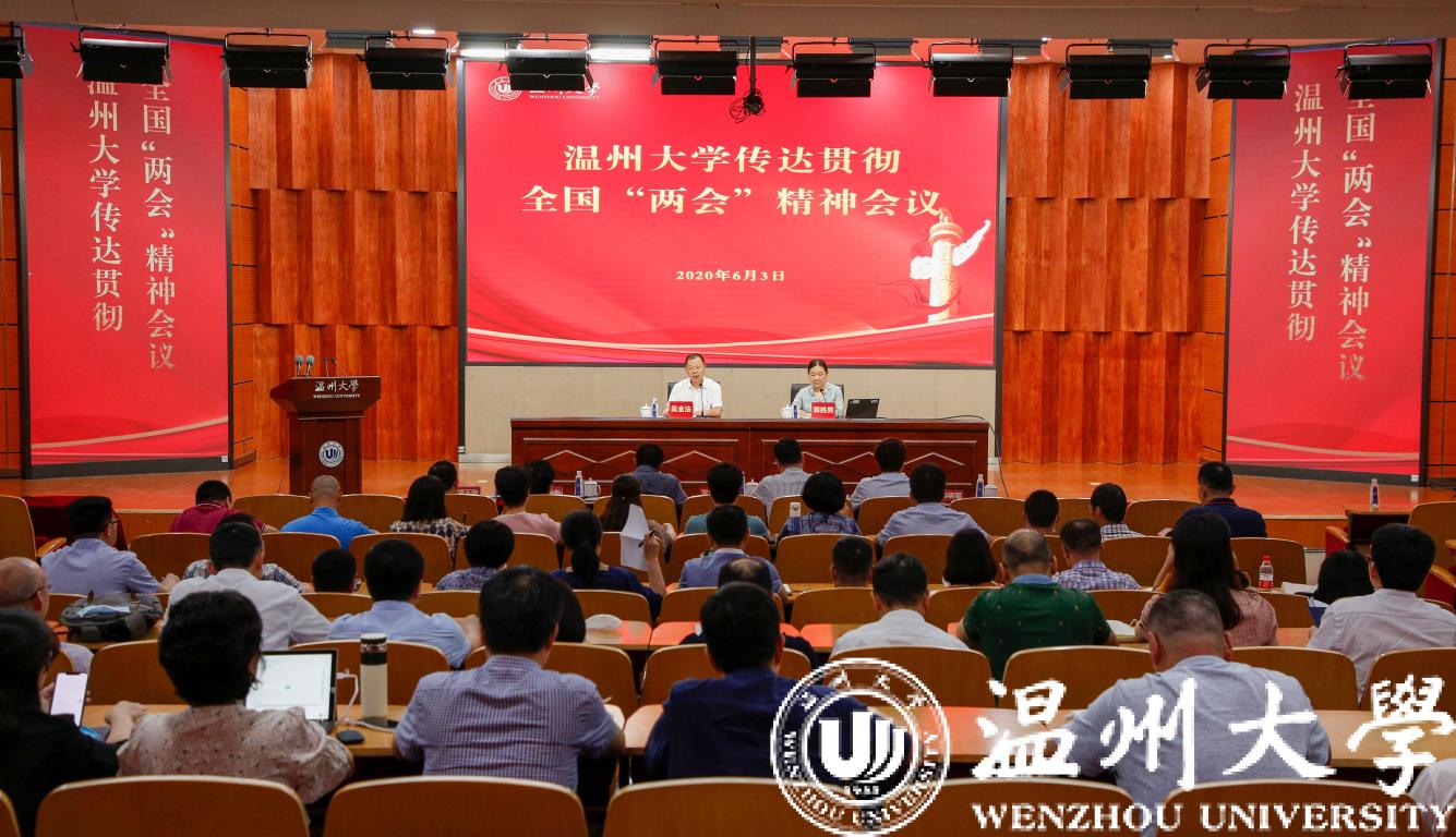 校党委副书记吴金法做总结讲话。他指出,学习贯彻落实“两会”精神是当前一项重要政治任务。一要进一步提高政治站位,按照“重要窗口”的目标定位,深入学习领会两会精神。全校上下要增强“四个意识”、坚定“四个自信”、做到“两个维护”,把学习贯彻全国两会精神与习近平总书记在浙江考察时的重要指示精神结合起来,努力把学习成果转化为加速推动学校跨越发展,为浙江建设“重要窗口”贡献更多温大力量。二要进一步凝心聚力,扛起“重要窗口”的使命担当,认真贯彻落实两会精神。要对照“重要窗口”新定位,积极开展“牢记嘱托、激扬精神,加快推进高水平教学研究型大学建设”大讨论大实践活动,围绕学校“一个定位、三大目标、五项重点、七大战略”,鼓实劲、出实招、求实效。当好“重要窗口”的建设者、维护者、展示者,用实际行动写好高等教育的“奋进之笔”。三要进一步真抓实干,强化“重要窗口”责任意识,抓好学校当前重点工作。学校疫情防控思想不能松懈,要继续绷紧疫情防控这根弦。要精密智控,精准施策,织密织牢校园安全防护网。要重点做好常态化教学、学生就业和毕业离校、博士点申报、制度建设等工作。