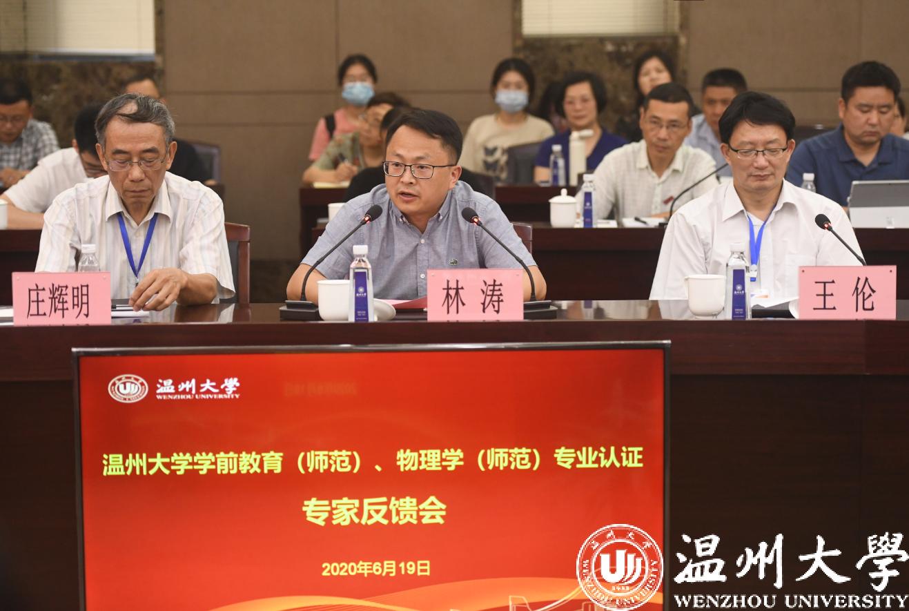 认证专家组成员分别是:学前教育专业专家组组长庄辉明教授、扬州大学教育科学学院陈秋苹教授、浙江师范大学国际儿童研究院秦金亮教授、丽水学院幼儿师范学院胡锋吉教授、杭州观成幼托园杨蓉总园长,物理学专业专家组组长安徽师范大学王伦教授、浙江师范大学赵雷洪教授、淮阴师范学院周平教授、湖州师范学院生命科学学院李彬教授、原浙江省教育厅教师工作处李敏强处长。浙江省教育厅教师工作处林涛副处长,日本a片 赵敏校长、薛伟副校长、徐和昆副校长,党校办等各有关职能部门负责人、两个专业所在学院的领导和教师代表、其他承担师范生培养学院的相关代表参加了会议。会议由专家组王伦组长主持。