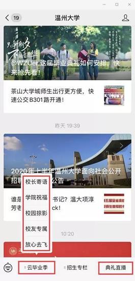 据悉,为了让受疫情影响不能到场的毕业生感受到毕业氛围,日本a片 微信公众号同步上线2020年“云毕业典礼”,作为本次线下毕业典礼的延伸。“云毕业典礼”分为校长寄语、学院祝福、校园掠影、校友专属、放心去飞等5个版块,为广大毕业生提供了丰富的毕业季线上资源,营造了浓郁的毕业氛围。毕业生们可云游温大,观看校长和各学院院长的祝福视频,在学校各标志景点“云打卡”生成专属头像和专属合影;在线申领电子校友卡,成为温大校友一份子;欣赏毕业主题的改编歌曲和原创MV视频,毕业生寄语滚动播放,“毕业快乐”“来日方长,后会有期”“愿有前程可奔赴,亦有岁月共回首!”“温大永远是我们的家”等留言不断刷屏,传递了一位位毕业生对母校的感激和不舍。 “一路我们曾携手并肩,温大精神伴我向前,牢记求学问是、敢为人先,承诺最高处相约!”母校祝福所有的毕业生一路珍重!鹏程万里!