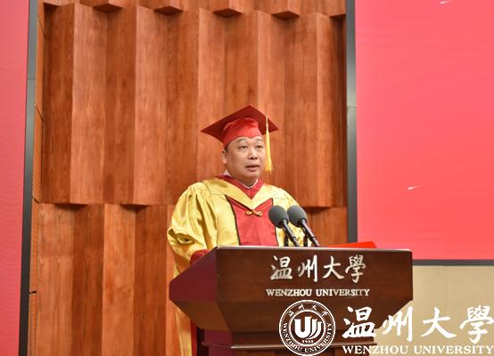 “今天,是属于你们的高光时刻!2020届毕业生顺利完成学业,即将开启人生新的征程!” 校长赵敏为全体毕业生致辞。由于疫情的影响,只有部分毕业生代表能够到现场参加毕业仪式,“作为校长,不能一一为你们拨穗正冠、面对你们道一声‘祝贺’,我的内心难掩遗憾。”但在这美好且特殊的时刻,校长更是为即将奔赴未来的毕业生们感到喜悦、激动和自豪。他寄语毕业生,希望同学们感悟新时期抗“疫”精神,始终保持真真切切的家国情怀,因为家国情怀是一个人最根本、最深沉的力量;感悟新时代温州人精神,始终保持敢闯敢拼的奋进姿态,因为身处温州的你们,敢闯敢试、创新创业,也刻下了温州人精神的深刻烙印;感悟新时代温大精神,始终保持追梦圆梦的持久恒心,因为你们是温大学子,身上有温大基因,温大精神已经熔铸于每个人的骨髓。他希望毕业生以“三种精神”为引领,乘风破浪,无畏前行。最后,赵敏校长深情说道:“请将母校对你们的牵挂装入行囊,趁年轻,大胆勇敢去闯吧,做奔涌澎湃的‘后浪’,不惧风雨、一往无前!母校永远是你们最坚强的后盾!”