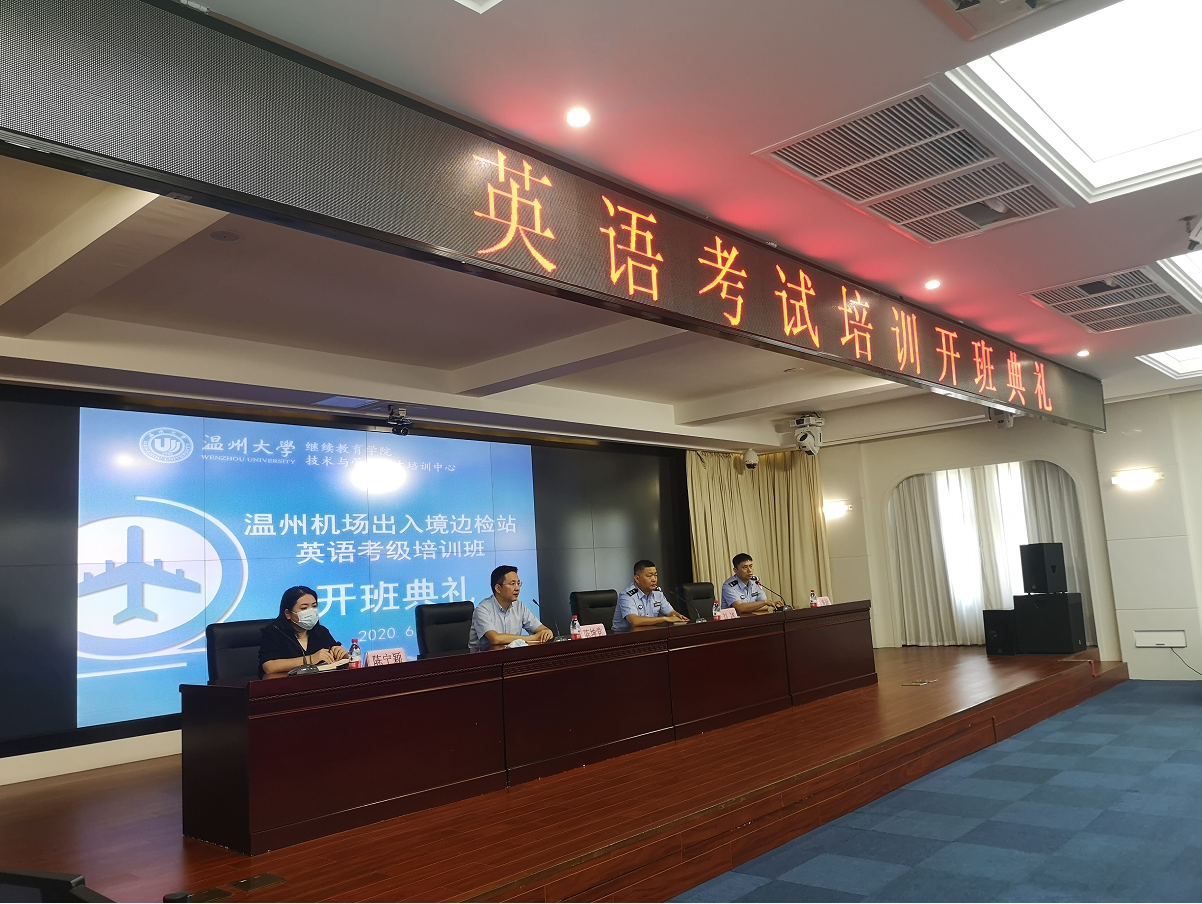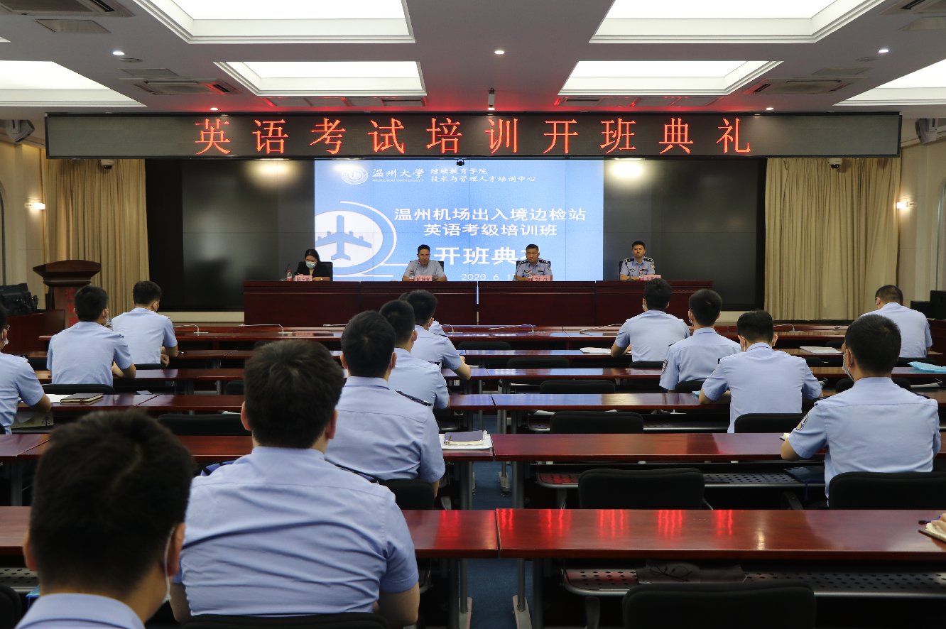 温州机场出入境边检站因其国际化的工作性质,提出“全员学外语大提升计划”,由日本a片 继续教育学院培训部联合日本a片 海外教育服务中心为其量身定制为期三个月的全国英语等级考试培训。昨天参与培训的46位学员正式开班了!